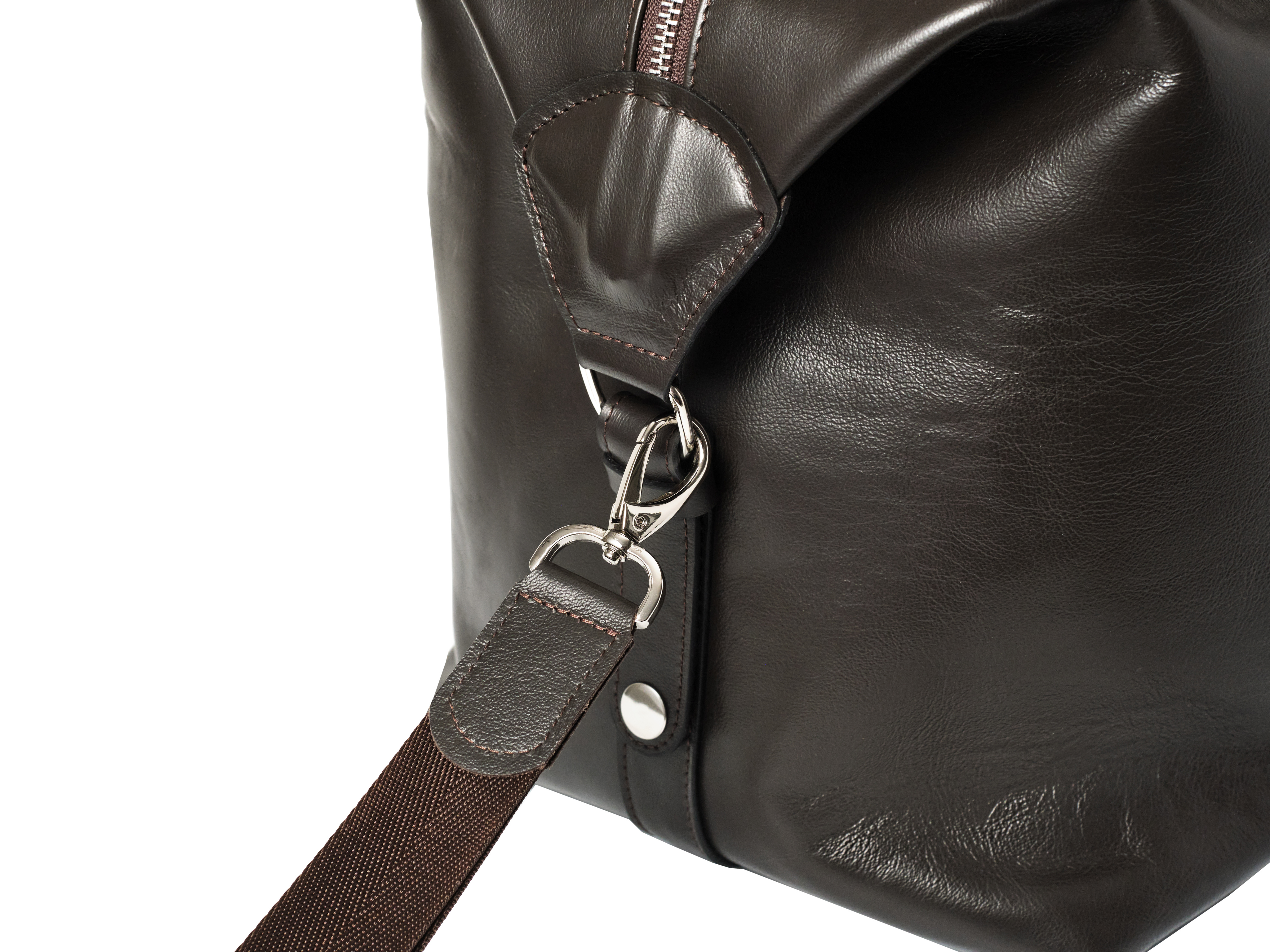 Ручки усилены внутренним канатом и выдерживают серьёзную нагрузку без растяжения и деформации. Качественная металлическая фурнитура, прочные молнии и идеально ровные швы подчёркивают высокий уровень исполнения. Специальные наружные крепления для длинного ремня позволяют носить сумку как в руке, так и через плечо - ремень входит в комплект.