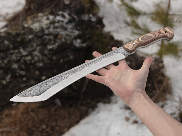 Этот мачете намного удобнее топора, рука так не устаёт при замахе. Монолитный клинок, заточка классная. Рубит только щепки летят. Крутой инструмент!