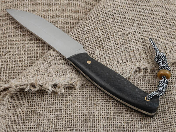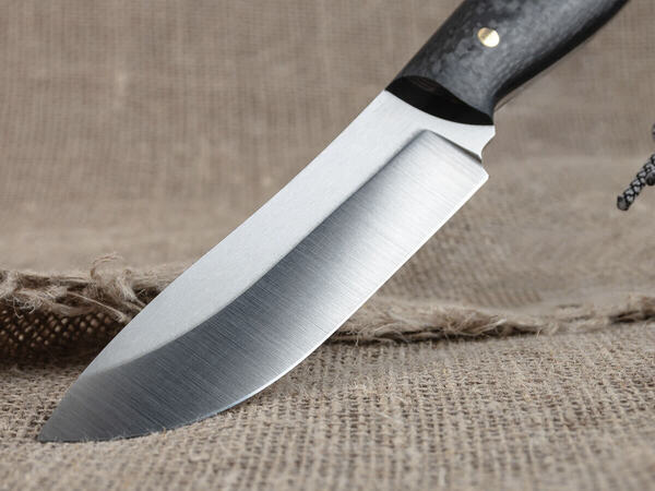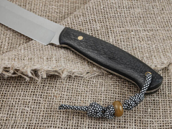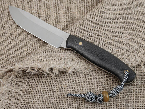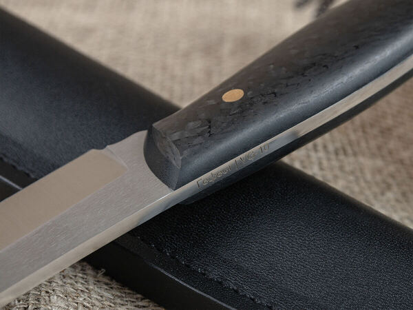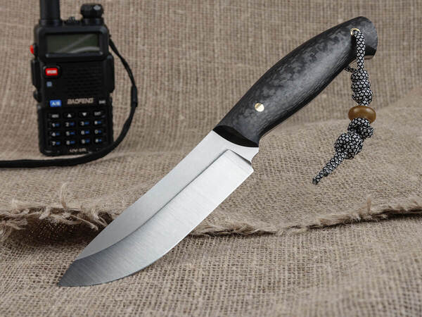 Рукоять ножа изготовлена из карбона – легкого и прочного материала премиум-класса. Он устойчив к коррозии, гниению, воде и запахам, хорошо поглощает вибрацию и не скользит в руке.