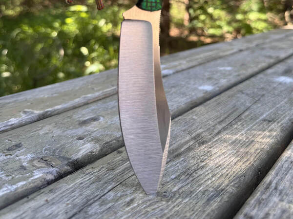 Клинок «Канадца » с скандинавскими спусками прочен и подходит для рубки, резки и строгания древесины. Серрейтор на обухе отвечает стандартам ножей для бушкрафта, выполняя рабочие и декоративные функции.