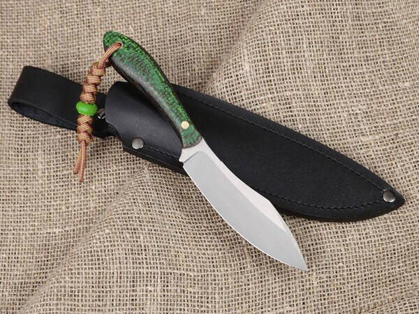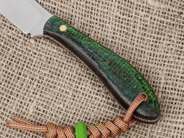 Микарта – прочный и практичный материал, объединяющий свойства дерева и пластика. Он устойчив к нагрузкам, воде и запахам, не холодит ладонь и не скользит в руке. Многослойность создает уникальный узор на рукояти, делая неповторимым каждый экземпляр.