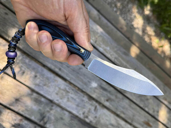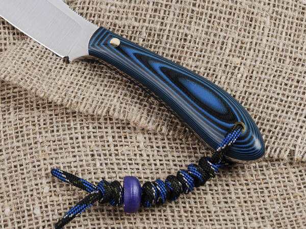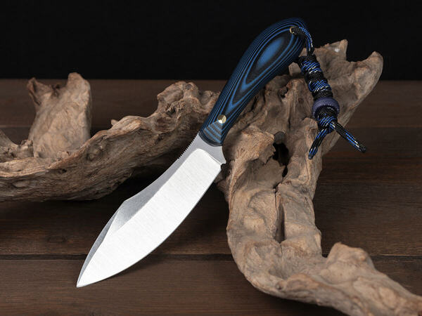 Рукоять ножа выполнена в элегантной сине-голубой гамме, напоминающей круги на воде. Этот красивый элемент придает ножу особую эстетику и выделяет его среди других моделей.