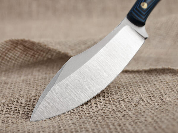 Нож «Канадец» выглядит стильно и сразу привлекает внимание. У него уникальный угловатый силуэт с крутым выступом на обухе. Широкое лезвие похоже на хищный коготь, а острие напоминает крепкий клюв.
