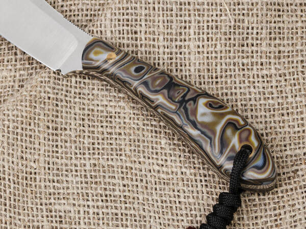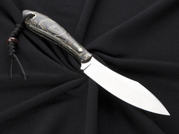 Микарта объединяет лучшие свойства дерева и пластика. Это прочный и практичный материал из спрессованных слоев ткани, бумаги, льняного волокна и синтетической смолы. Рукоять из микарты устойчива к нагрузкам, не впитывает воду и запахи, не холодит ладонь и не скользит в руке. Многослойность материалов создает неповторимый узор, который делает уникальным каждый экземпляр ножа.