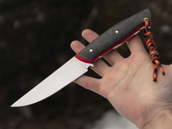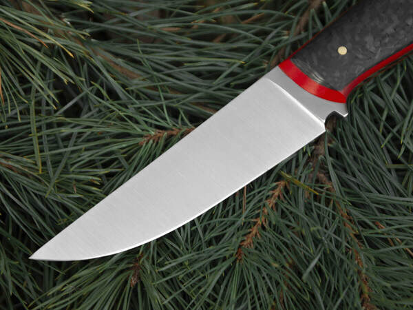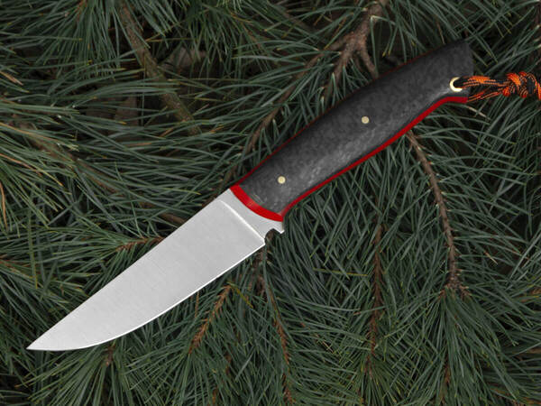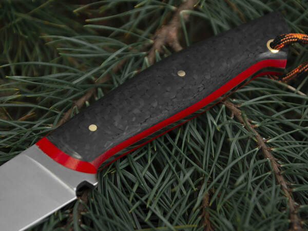 Рукоять ножа изготовлена из карбона – легкого и прочного материала премиум-класса. Он устойчив к коррозии, гниению, воде и запахам, хорошо поглощает вибрацию и не скользит в руке.
