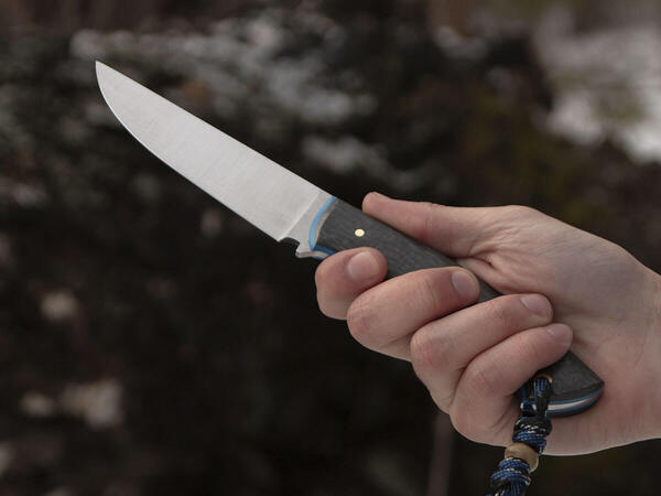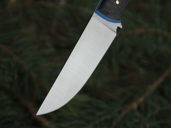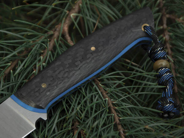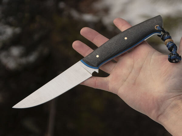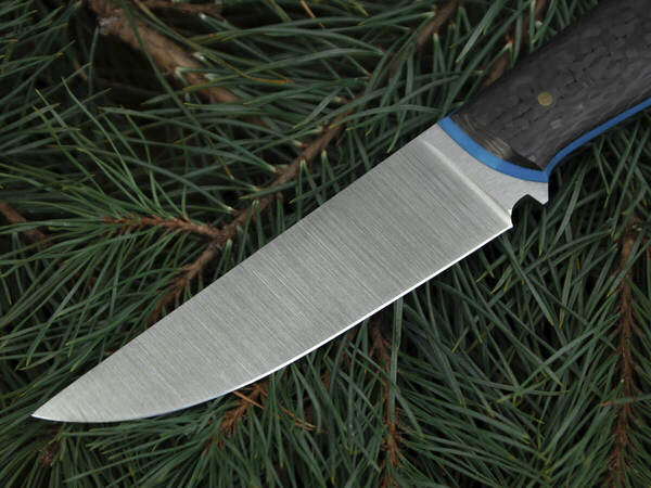 Рукоять ножа изготовлена из карбона – легкого и прочного материала премиум-класса. Он устойчив к коррозии, гниению, воде и запахам, хорошо поглощает вибрацию и не скользит в руке.