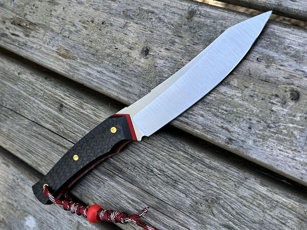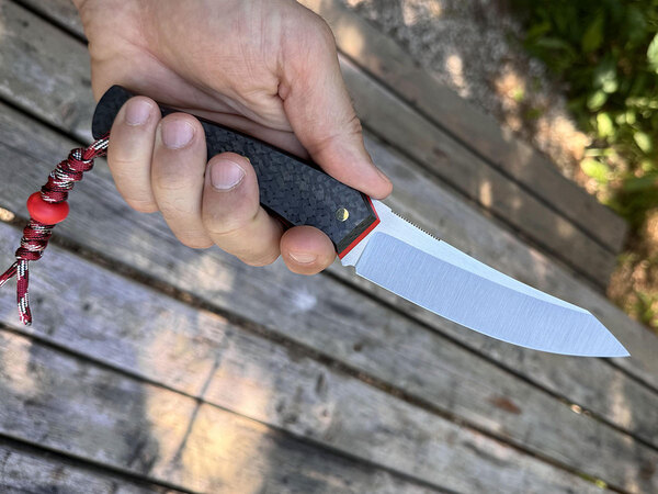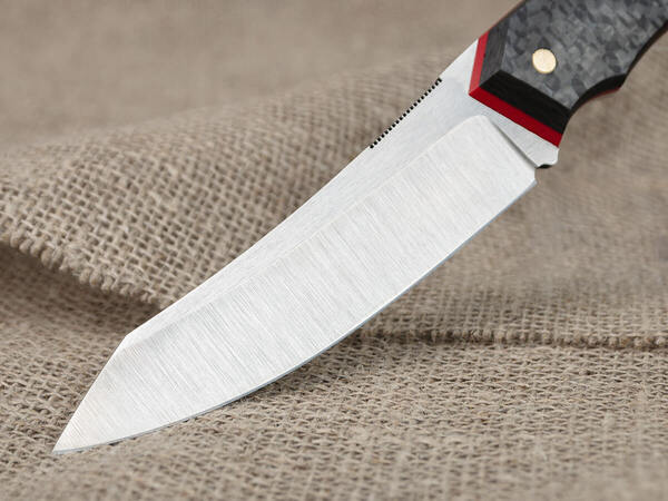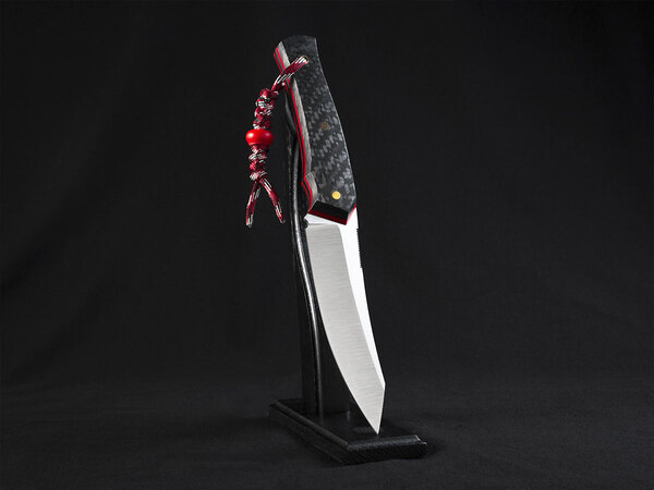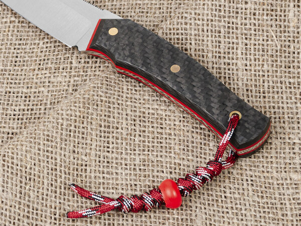 Рукоять ножа изготовлена из карбона – легкого и прочного материала премиум-класса. Он устойчив к коррозии, гниению, воде и запахам, хорошо поглощает вибрацию и не скользит в руке.