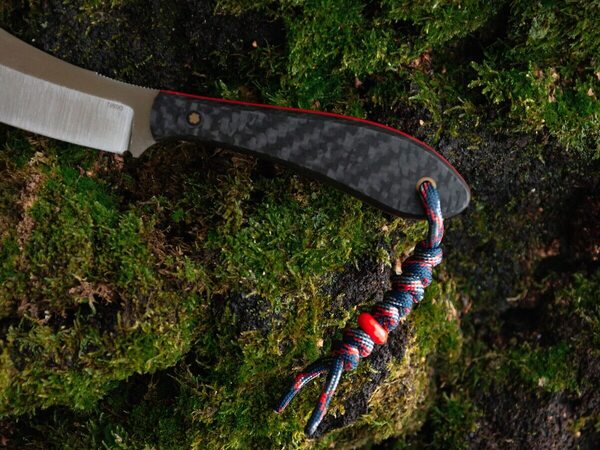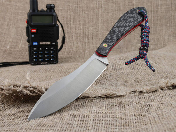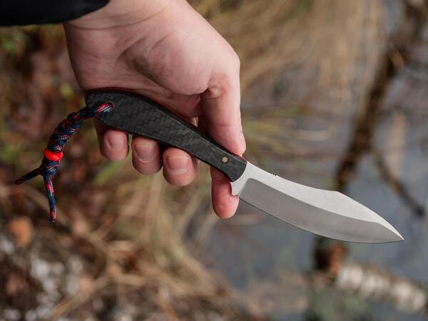 Нож чудо! Сопровождал меня в недельном походе. Строгал, рубил, разделывал дичь справился на отлично! Сталь не подвела, заточку держала великолепно. Рукоять из карбона супер, не скользит и не намокает. Чувствуется надежность цельной конструкции. Рекомендую!