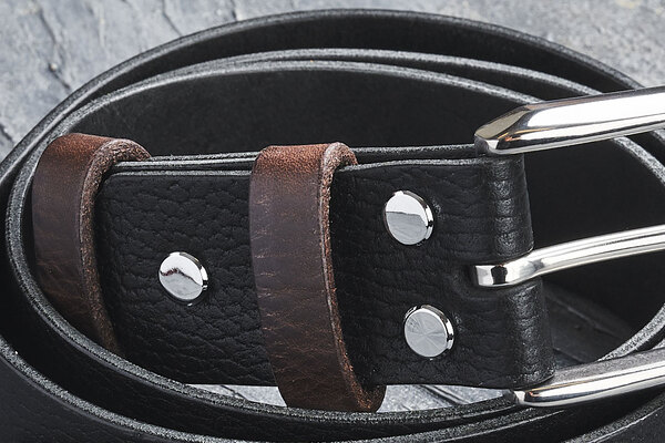 Цвет изделия не просто черный – это сложный насыщенный оттенок, напоминающий цвет ночного неба. Такой ремень не конфликтует с другими аксессуарами, но притягивает внимание.