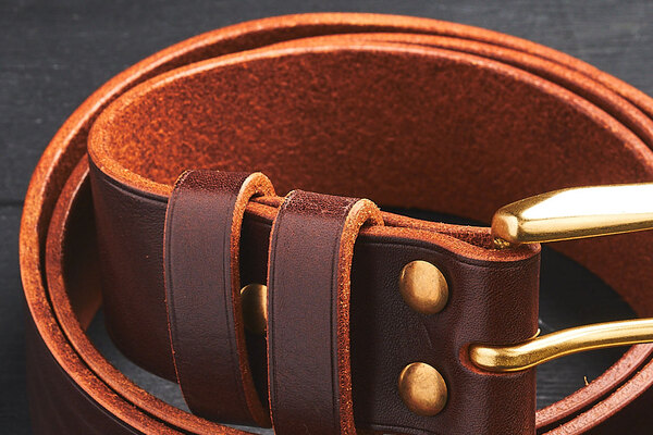 Край ремня укреплен биговкой (вдавленной полосой), которая предотвращает его «заворачивание». Благодаря тщательной полировке срезы ремня не истираются и не впитывают влагу.