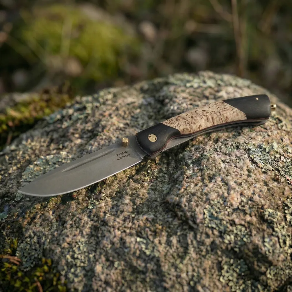 Складной нож "Белогор", сталь Х12МФ, рукоять карельская береза/граб
