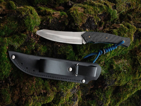 Рукоять ножа изготовлена из карбона – легкого и прочного материала премиум-класса. Он устойчив к коррозии, гниению, воде и запахам, хорошо поглощает вибрацию и не скользит в руке.
