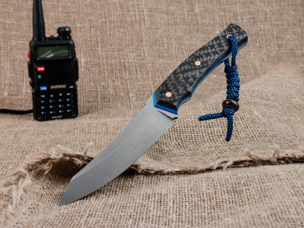 Нож для бушкрафта "Велес", сталь VG-10/Elmax, рукоять карбон (синий спейсер)