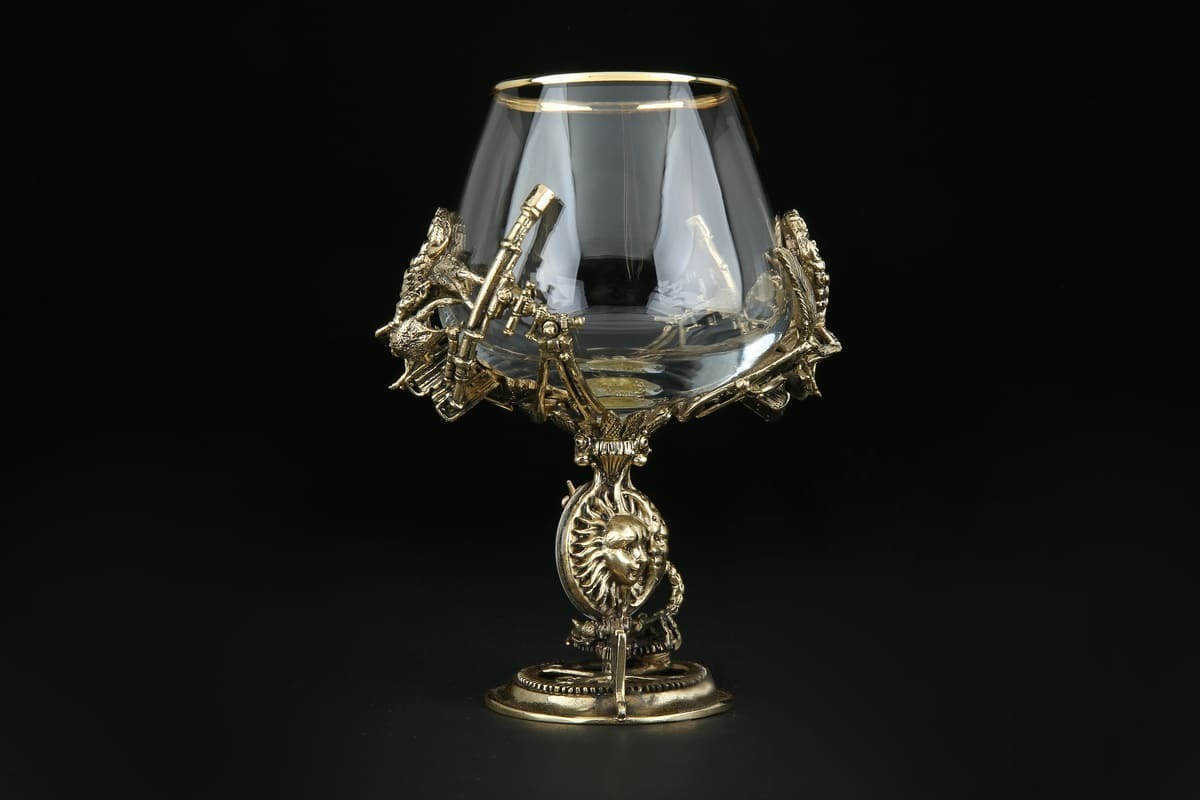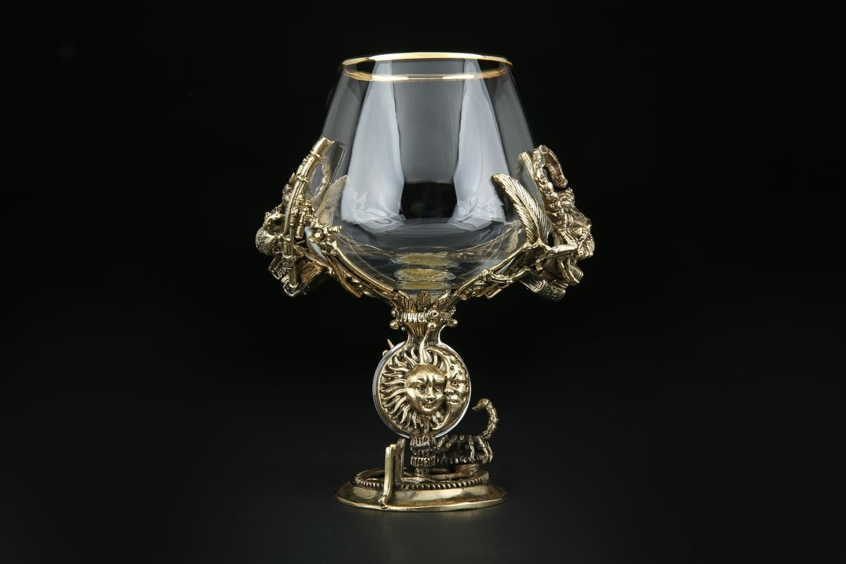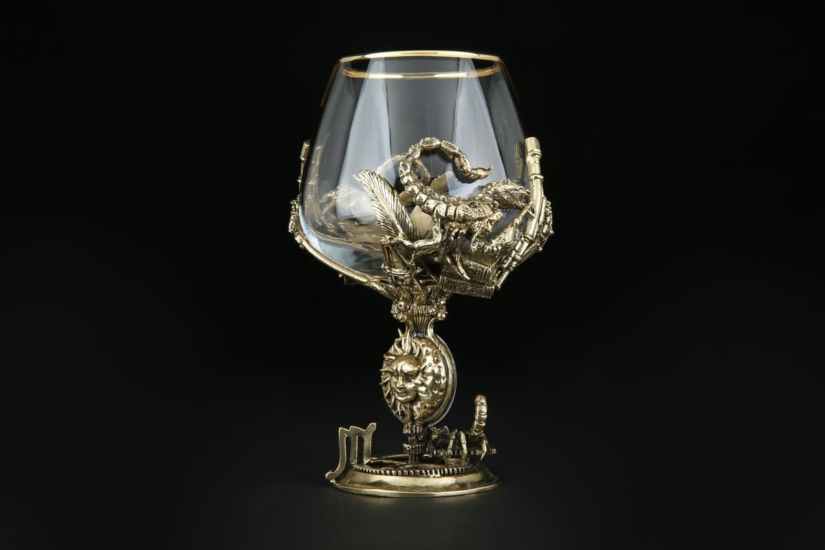 Ножка бокала, выполненная методом художественного литья из латуни, имеет идеальную детализацию и прорисовку всех элементов. Оцените мастерство автора, который передал в металле мельчайшие детали.