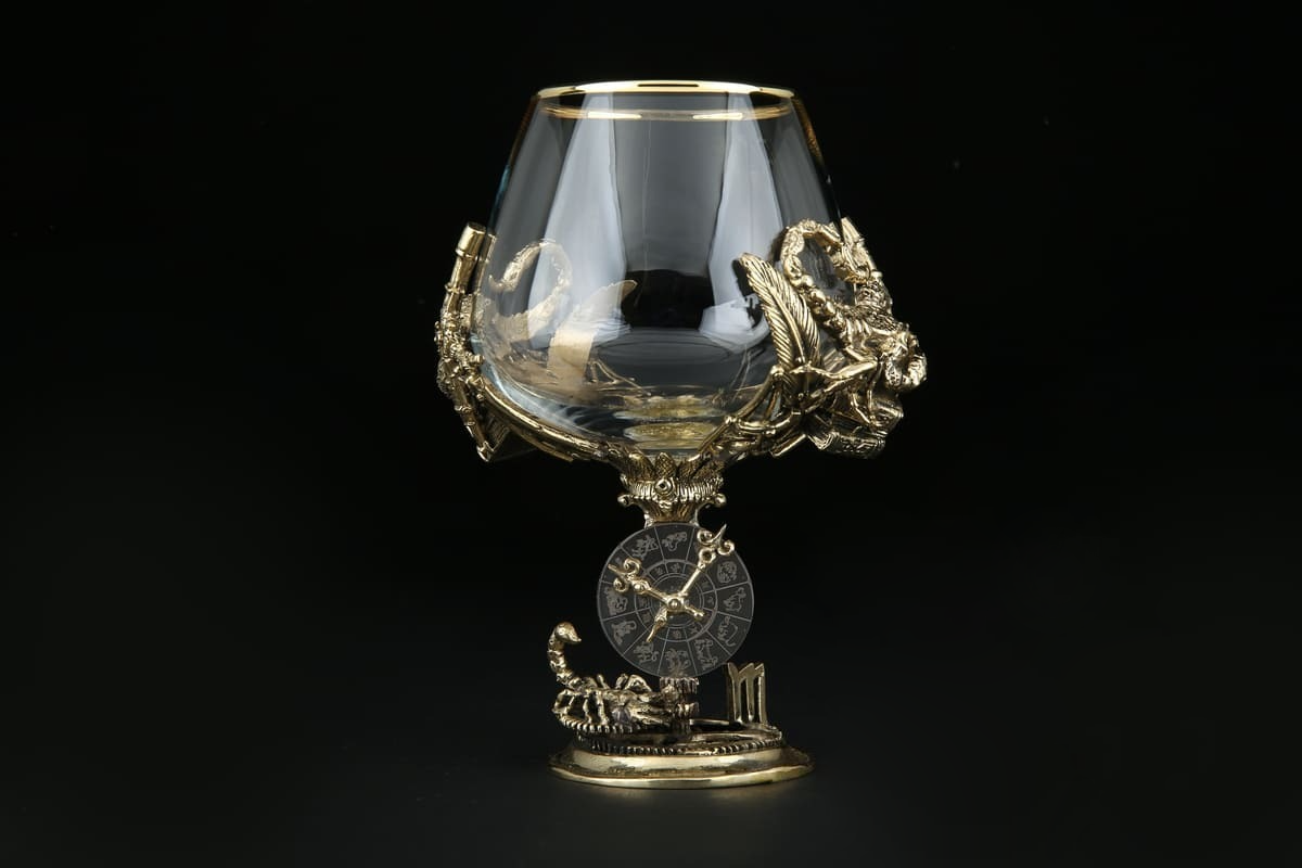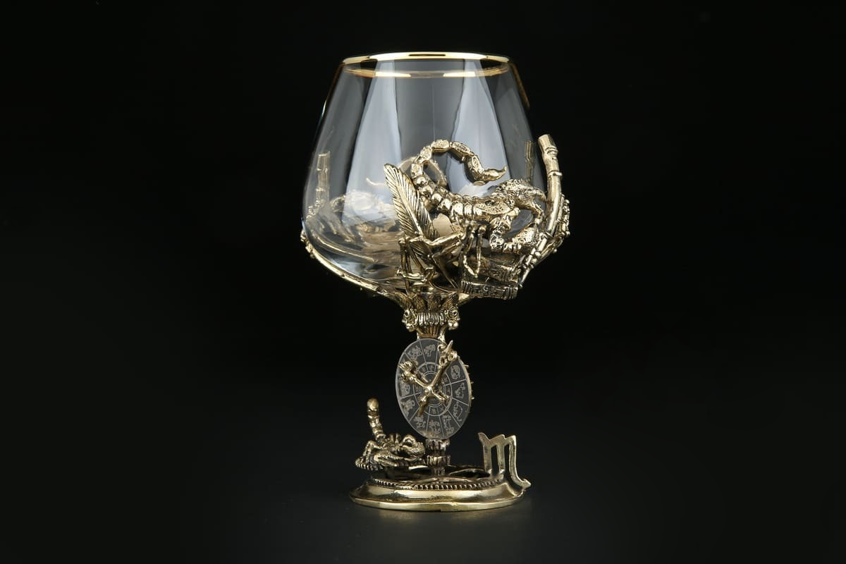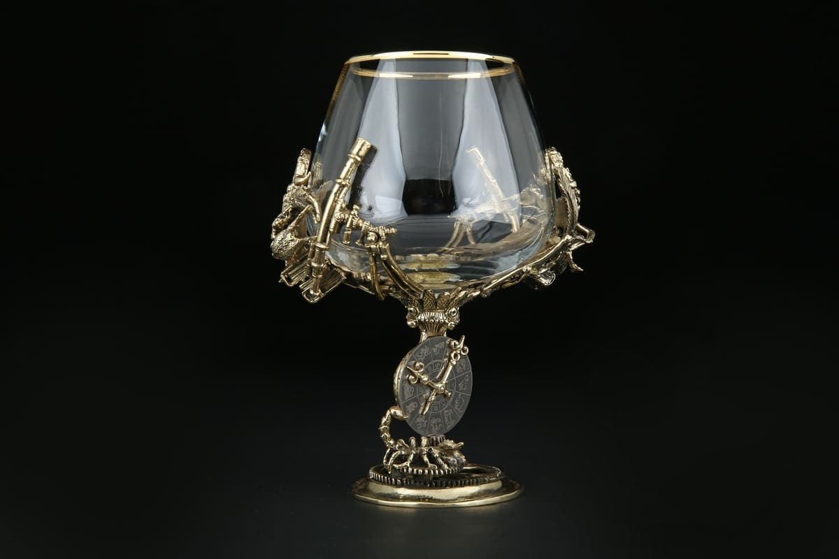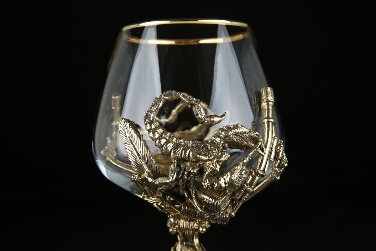Ножка бокала, выполненная методом художественного литья из латуни, имеет идеальную детализацию и прорисовку всех элементов. Оцените мастерство автора, который передал в металле мельчайшие детали.