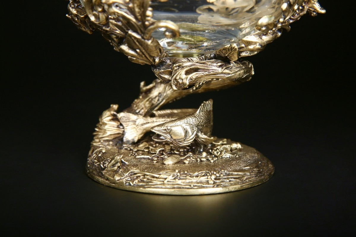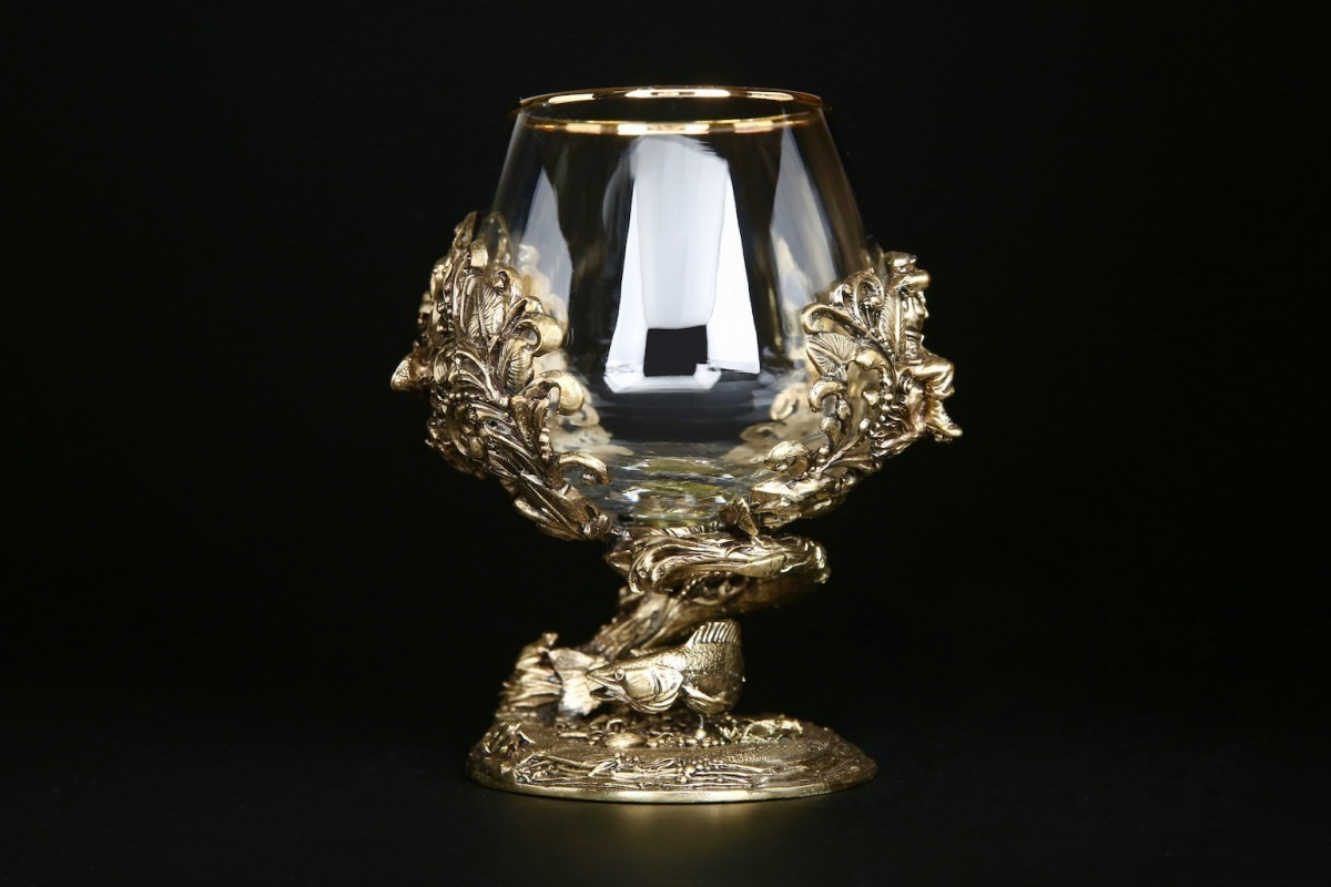 Ножка бокала, выполненная методом художественного литья из латуни, имеет идеальную детализацию и прорисовку всех элементов. Оцените мастерство автора, который передал в металле мельчайшие детали.
