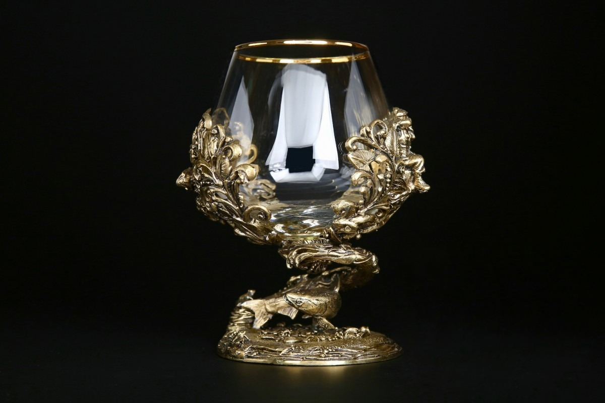 Ножка бокала, выполненная методом художественного литья из латуни, имеет идеальную детализацию и прорисовку всех элементов. Оцените мастерство автора, который передал в металле мельчайшие детали.