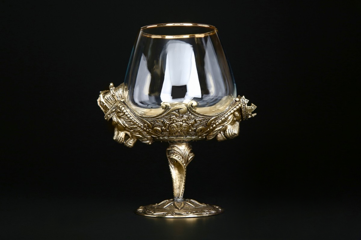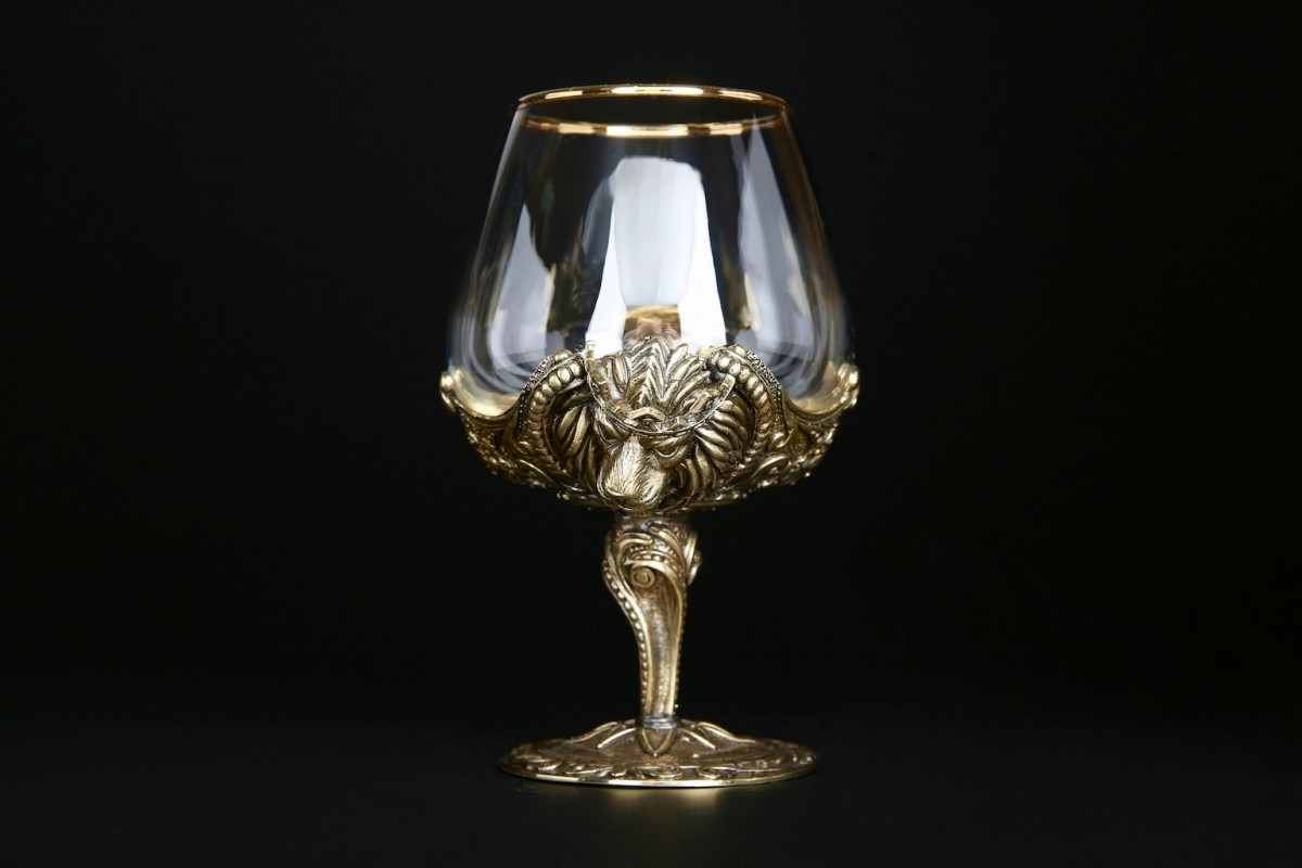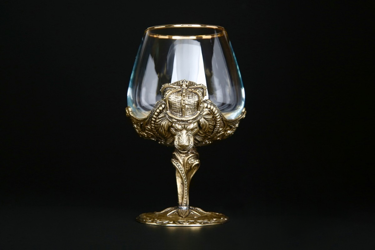 Ножка бокала, выполненная методом художественного литья из латуни, изображает голову льва, имеет идеальную детализацию и прорисовку всех элементов. Оцените мастерство автора, который передал в металле мельчайшие детали.