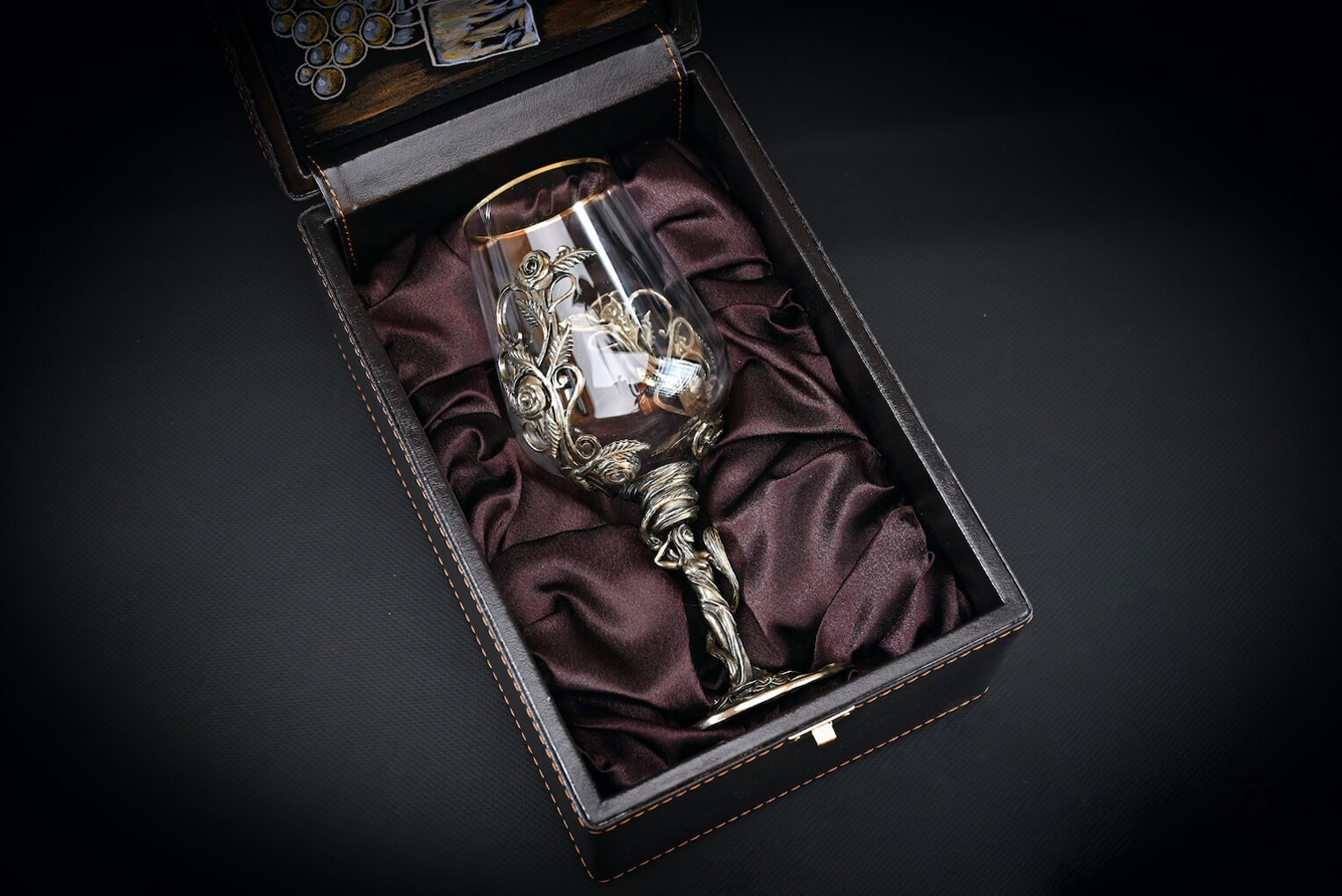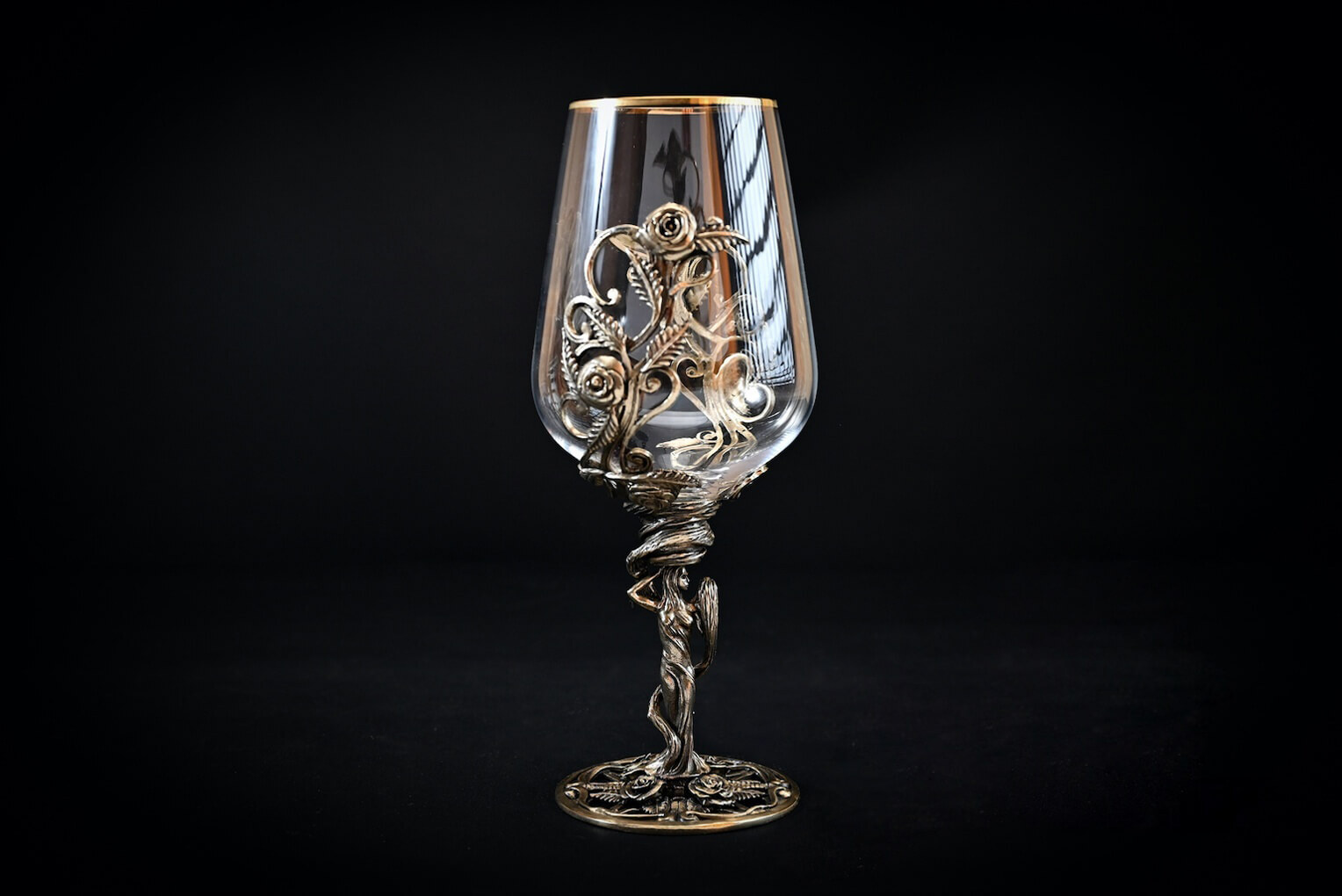Каждый бокал уникальное авторское изделие. Необычный декор, выполненный методом художественного литья, восхищает и завораживает свой ажурной красотой.