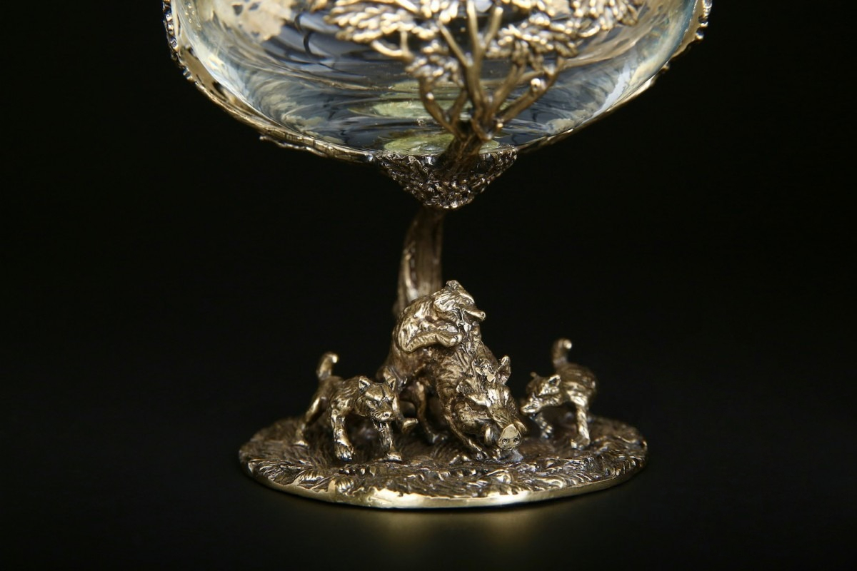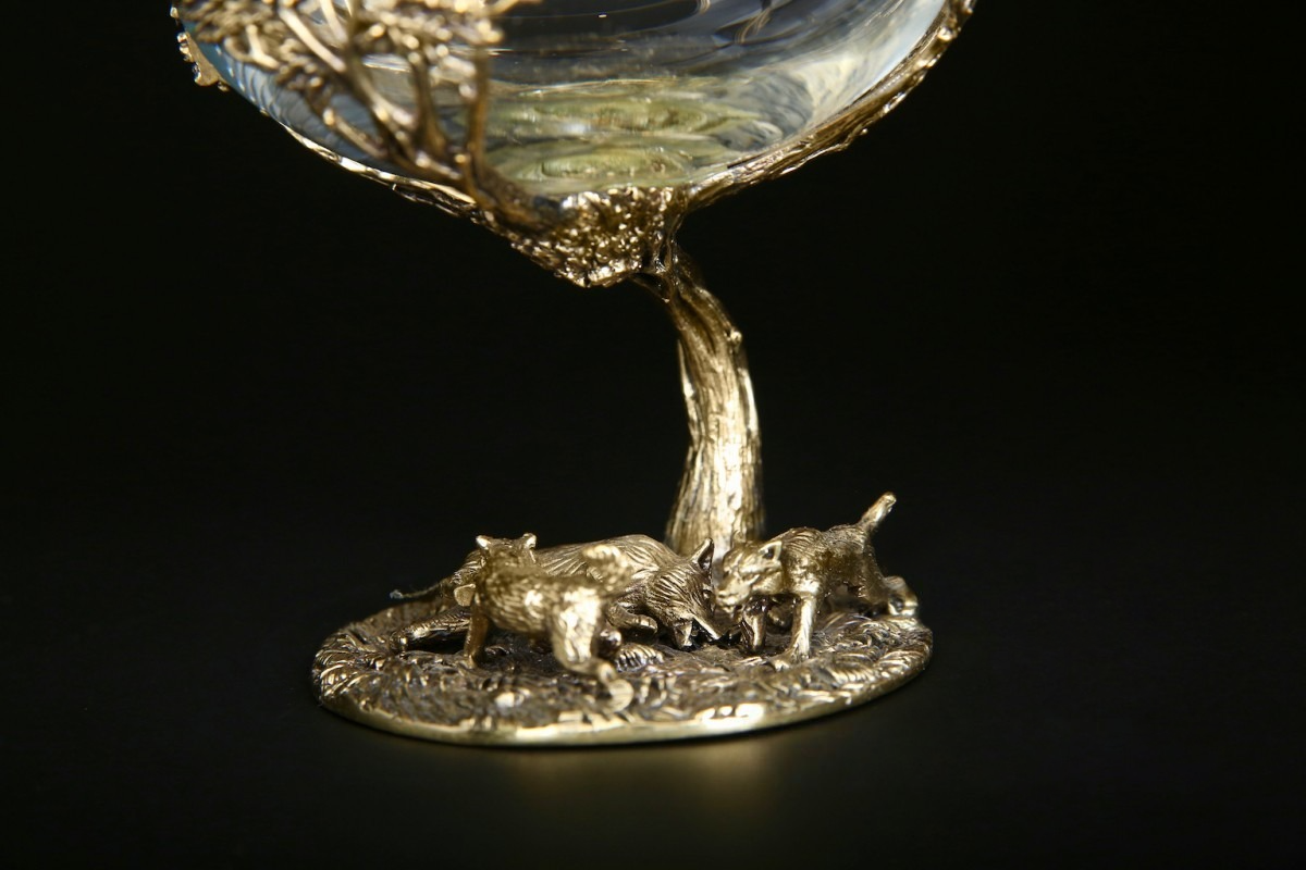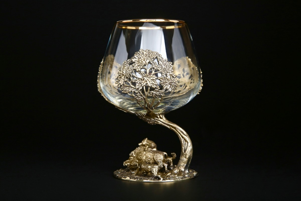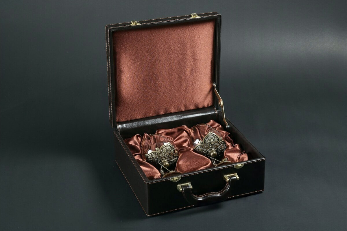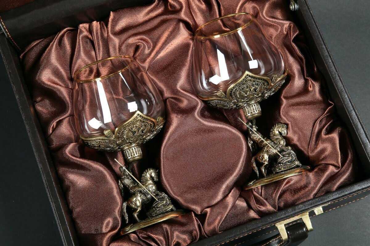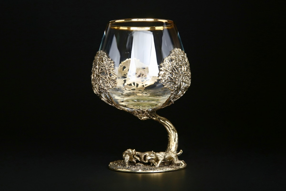 Эти бокалы выполнены из лучших материалов: хрустальное стекло идеально сочетается с художественной латунью, что делает их не только предметом для напитков, но и настоящим произведением искусства.