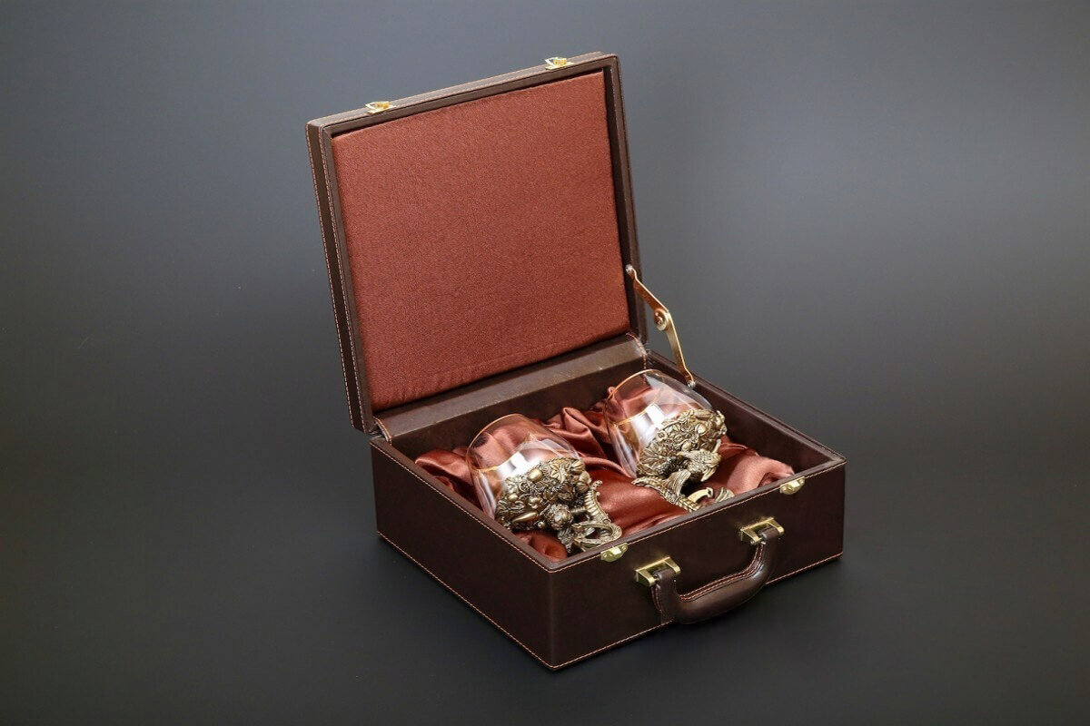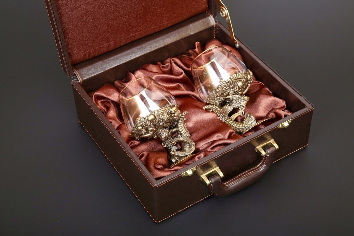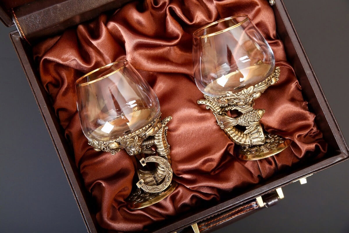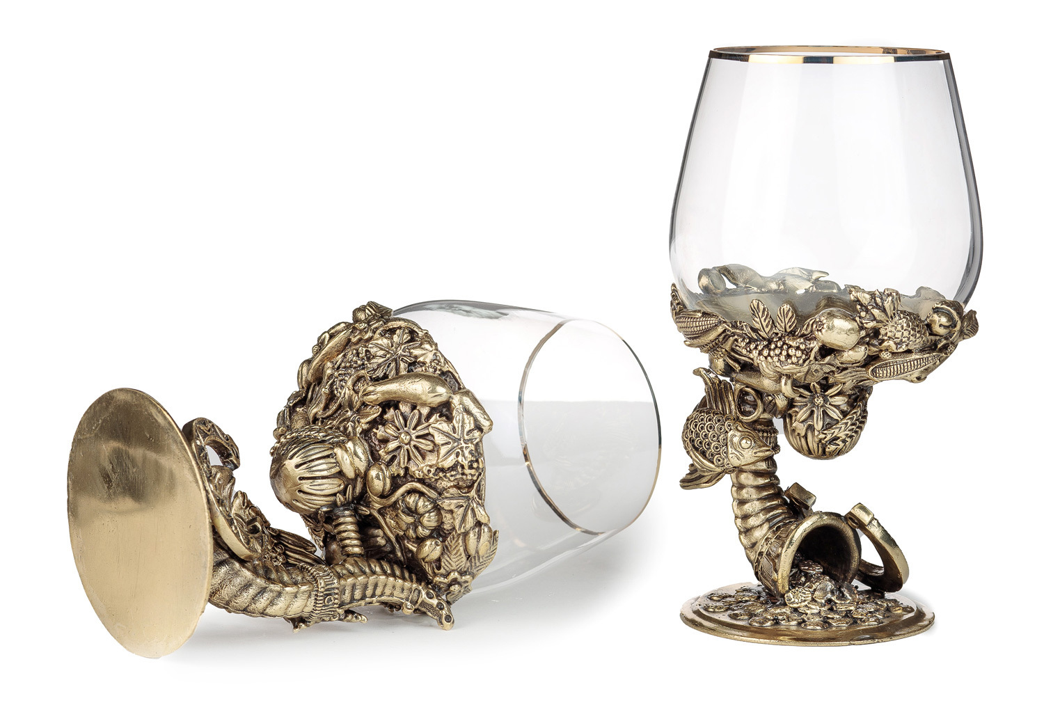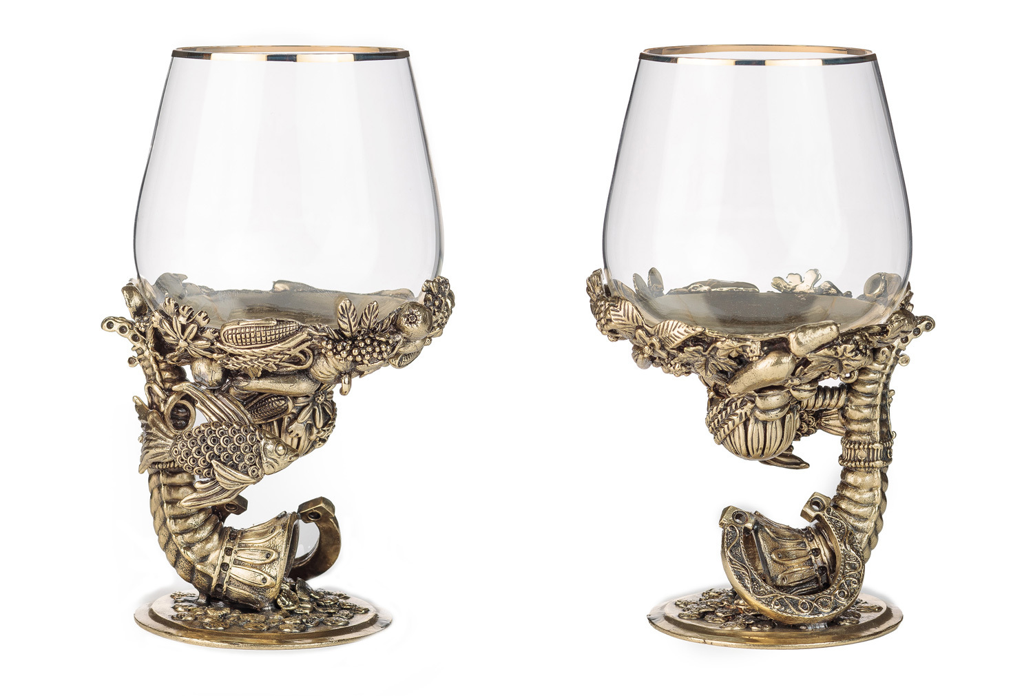 Эти бокалы выполнены из лучших материалов: хрустальное стекло идеально сочетается с художественной латунью, что делает их не только предметом для напитков, но и настоящим произведением искусства.