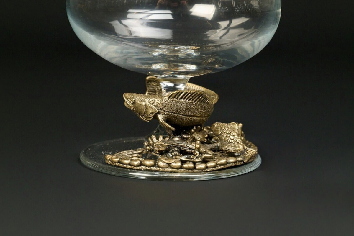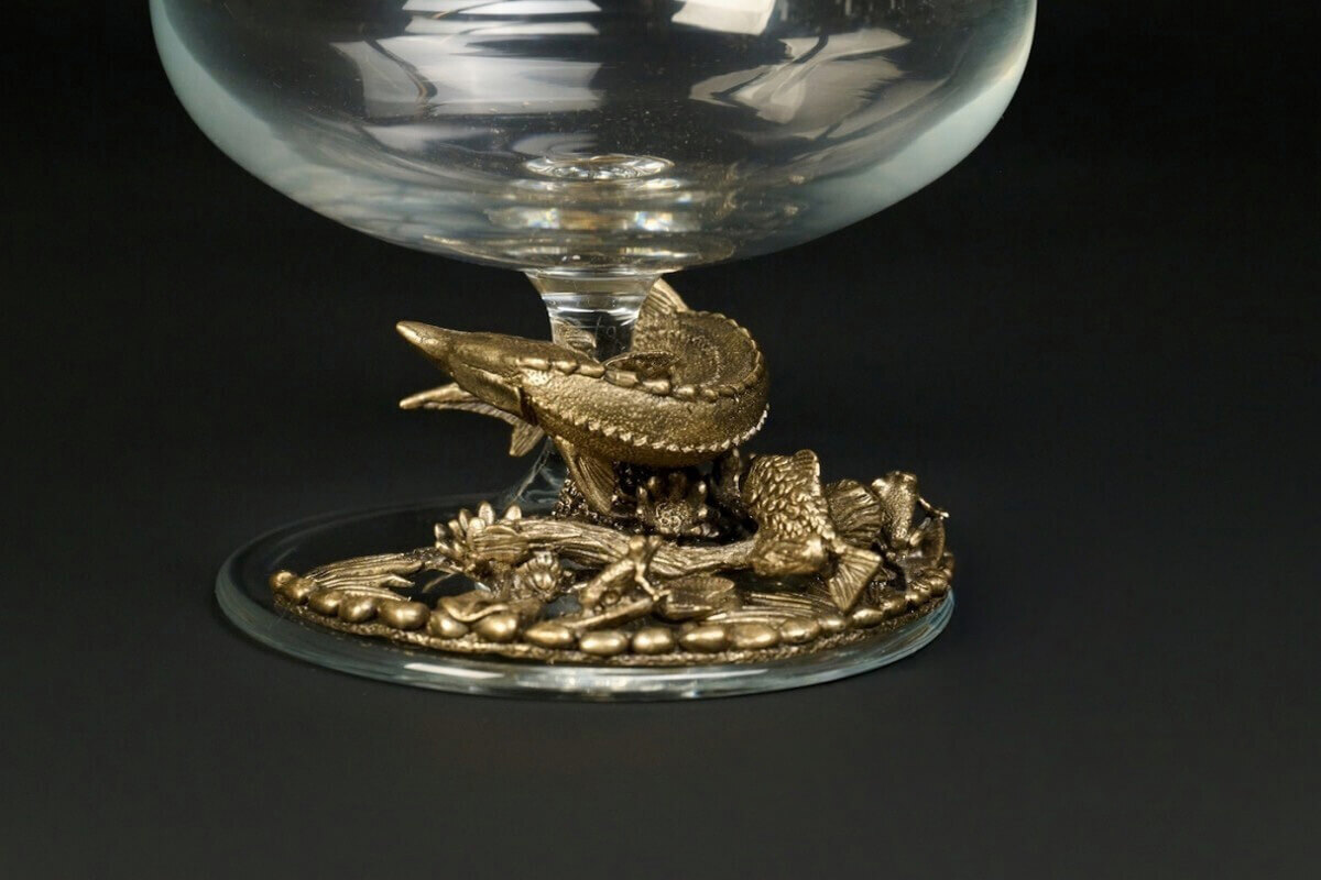 Ножка бокала, выполненная методом художественного литья из латуни, имеет идеальную детализацию и прорисовку всех элементов. Оцените мастерство автора, который передал в металле мельчайшие детали.