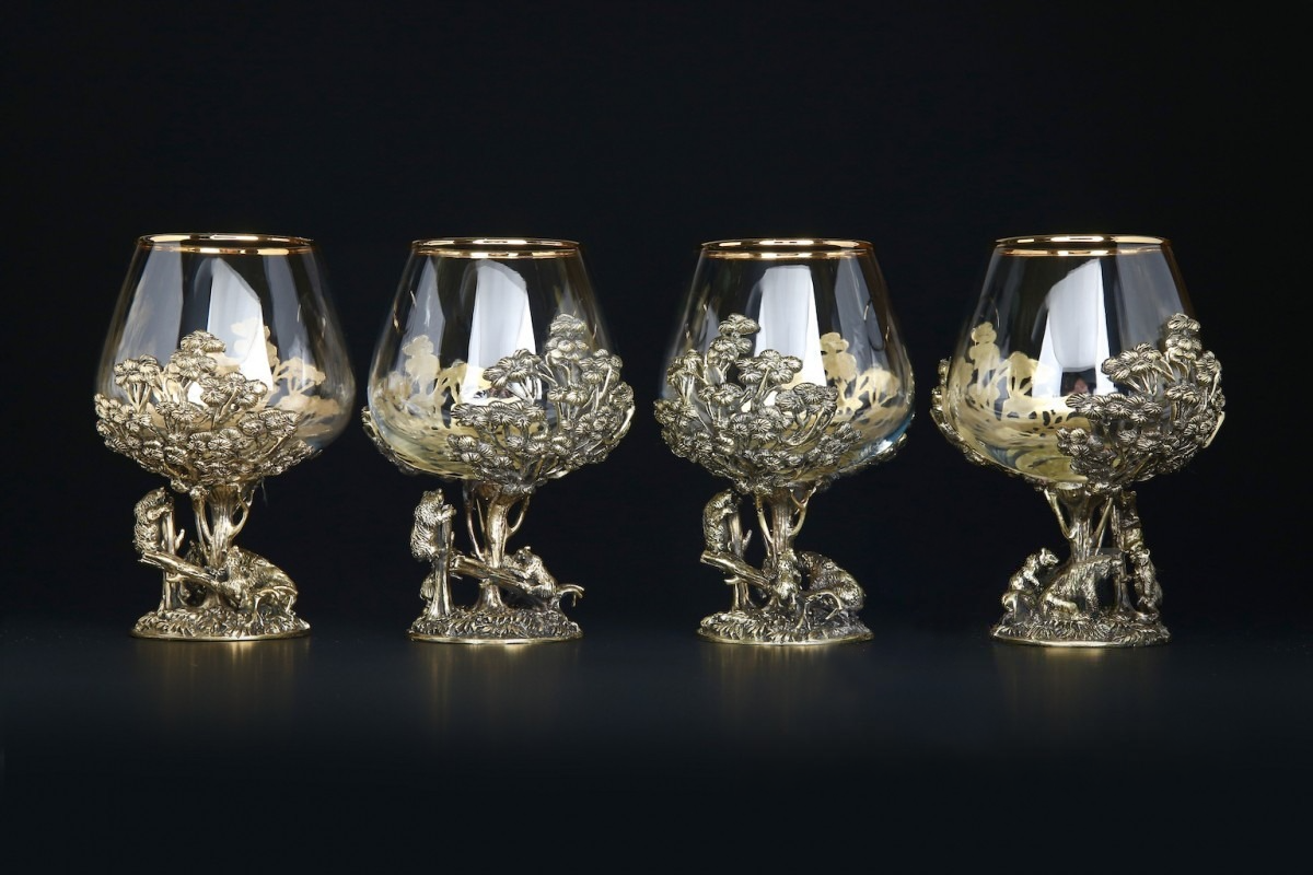 В художественном литье мастер оживил классический сюжет картины Шишкина «Утро в сосновом бору». Сцена проработана до мельчайших деталей, придавая бокалу роскошный вид.