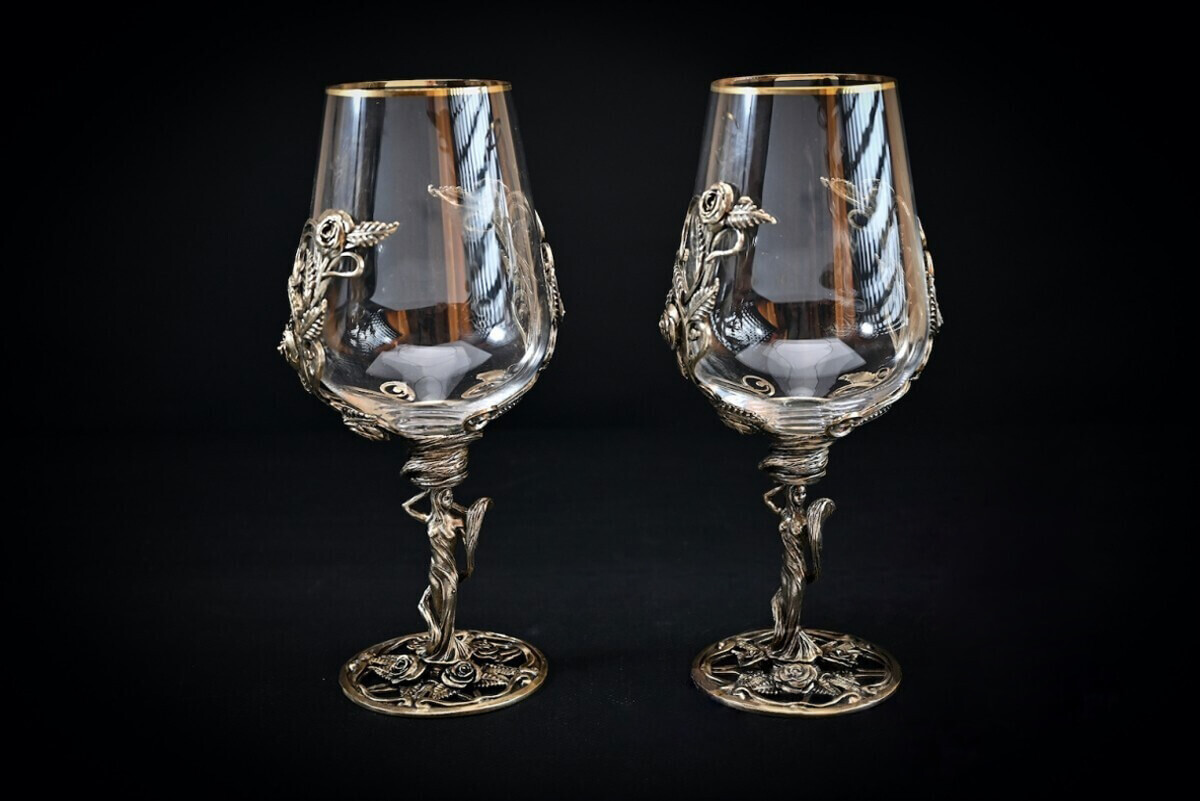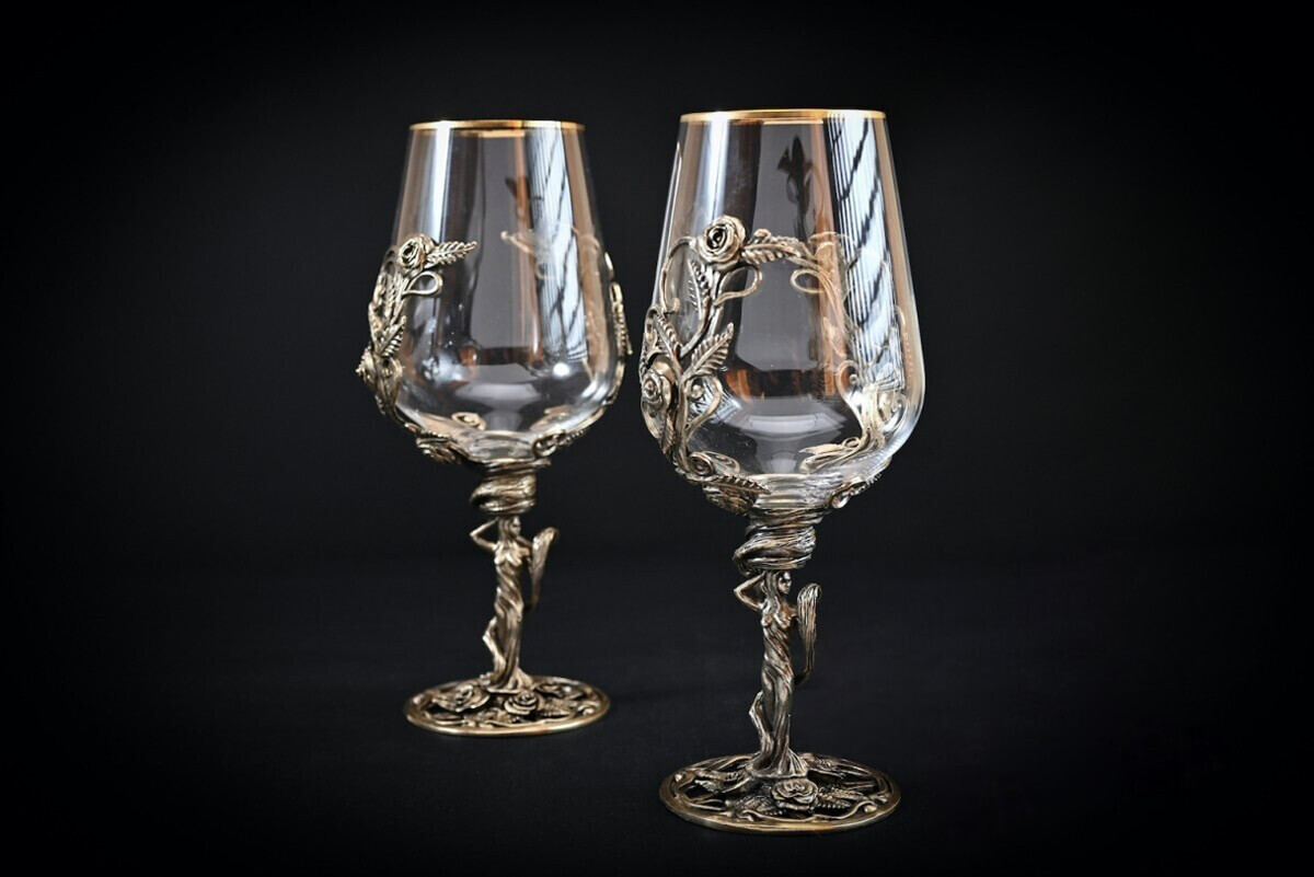Каждый бокал уникальное авторское изделие. Необычный декор, выполненный методом художественного литья, восхищает и завораживает свой ажурной красотой.