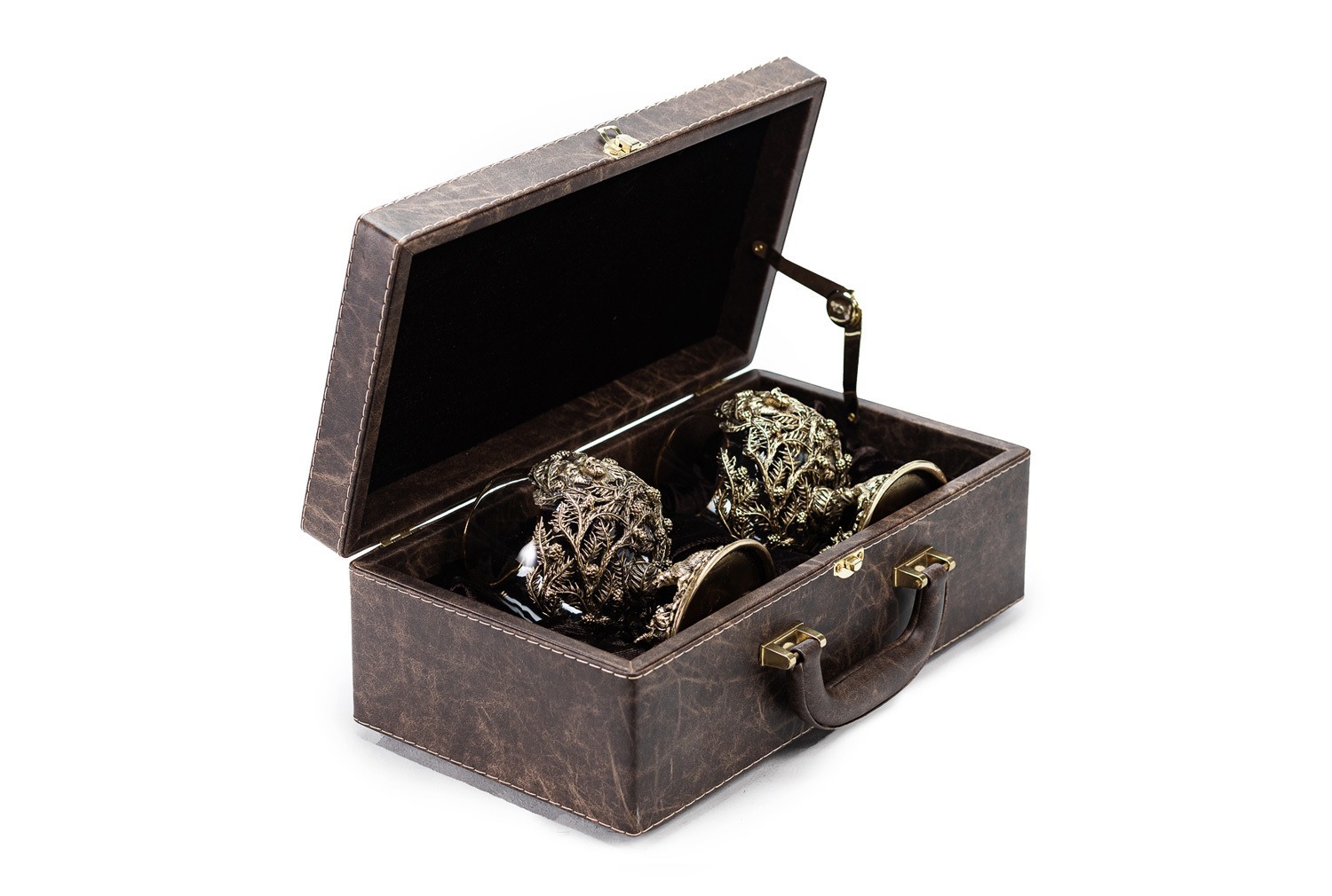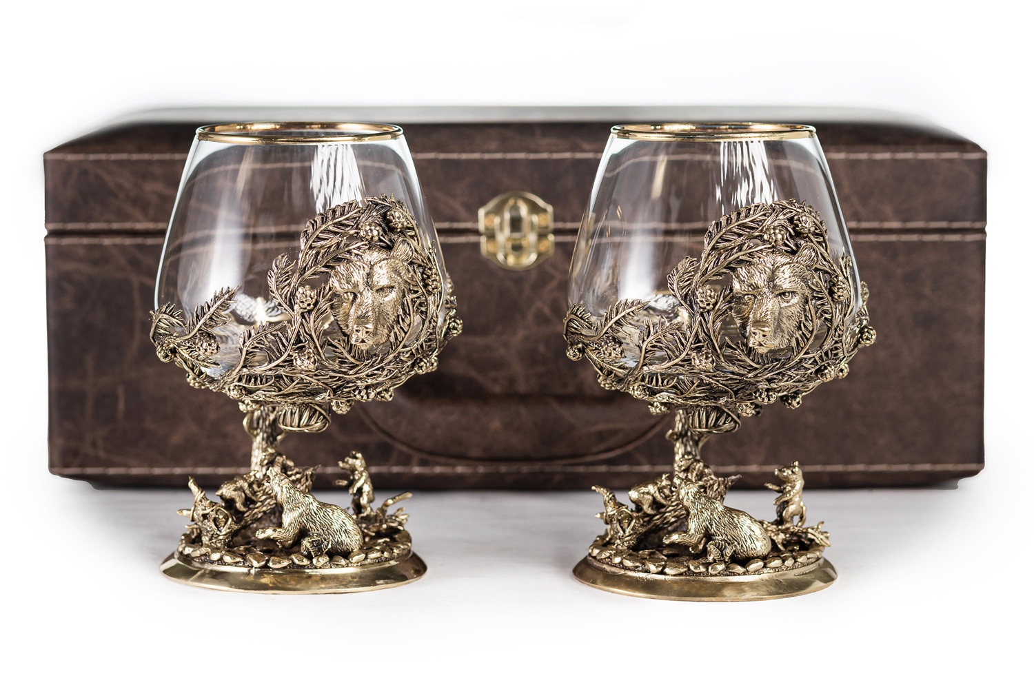 Два шикарных бокала для коньяка «Утро в сосновом бору» оживят дружескую беседу за коньяком. На основании латунной ножки изображены медведи с картины великого художника Ивана Шишкина.