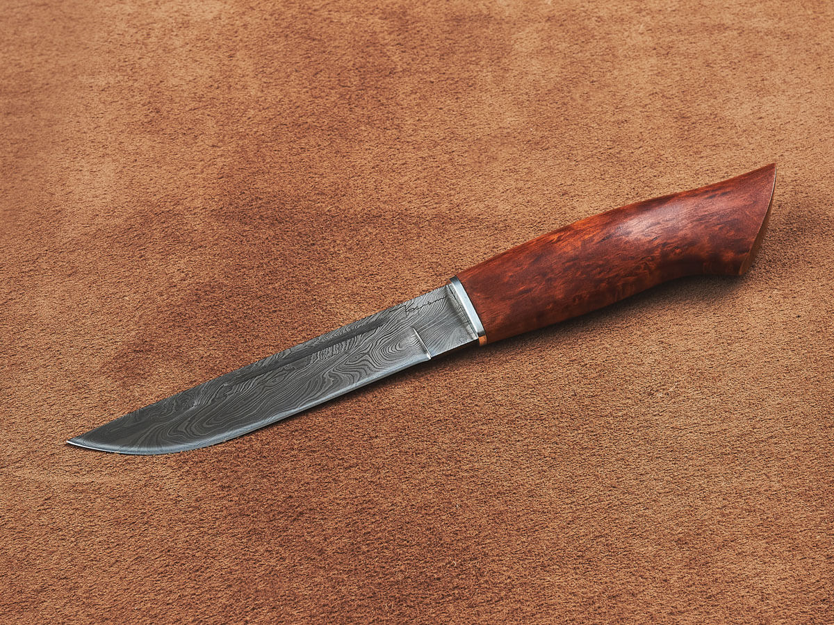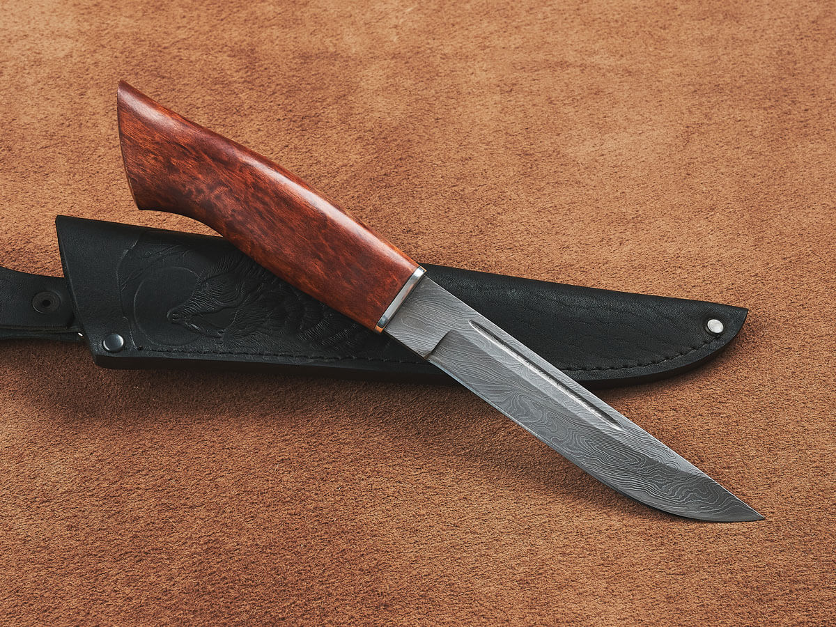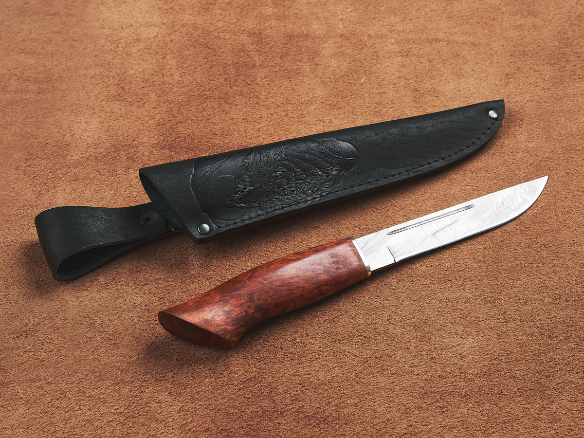 Оба ножа оснащены крепкой рукоятью из карельской березы – красивого прочного материала, который не боится влаги и холода, не рассыхается, не трескается на морозе и умеет удерживать тепло даже при минусовой температуре.