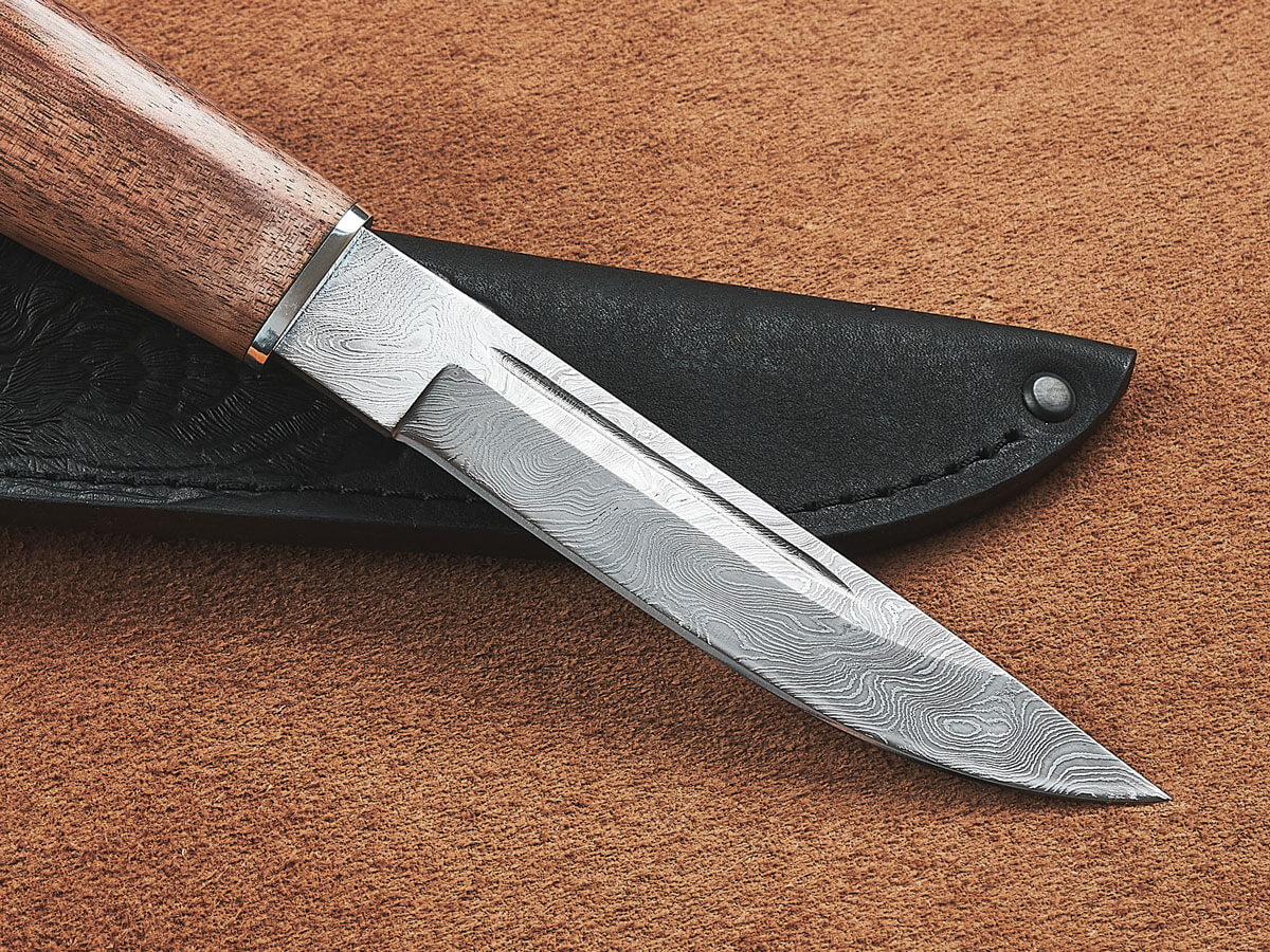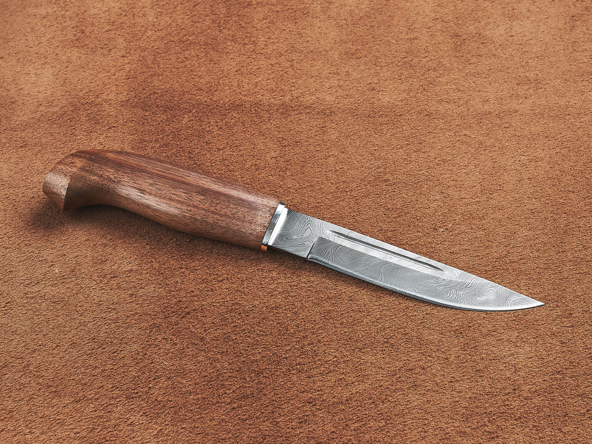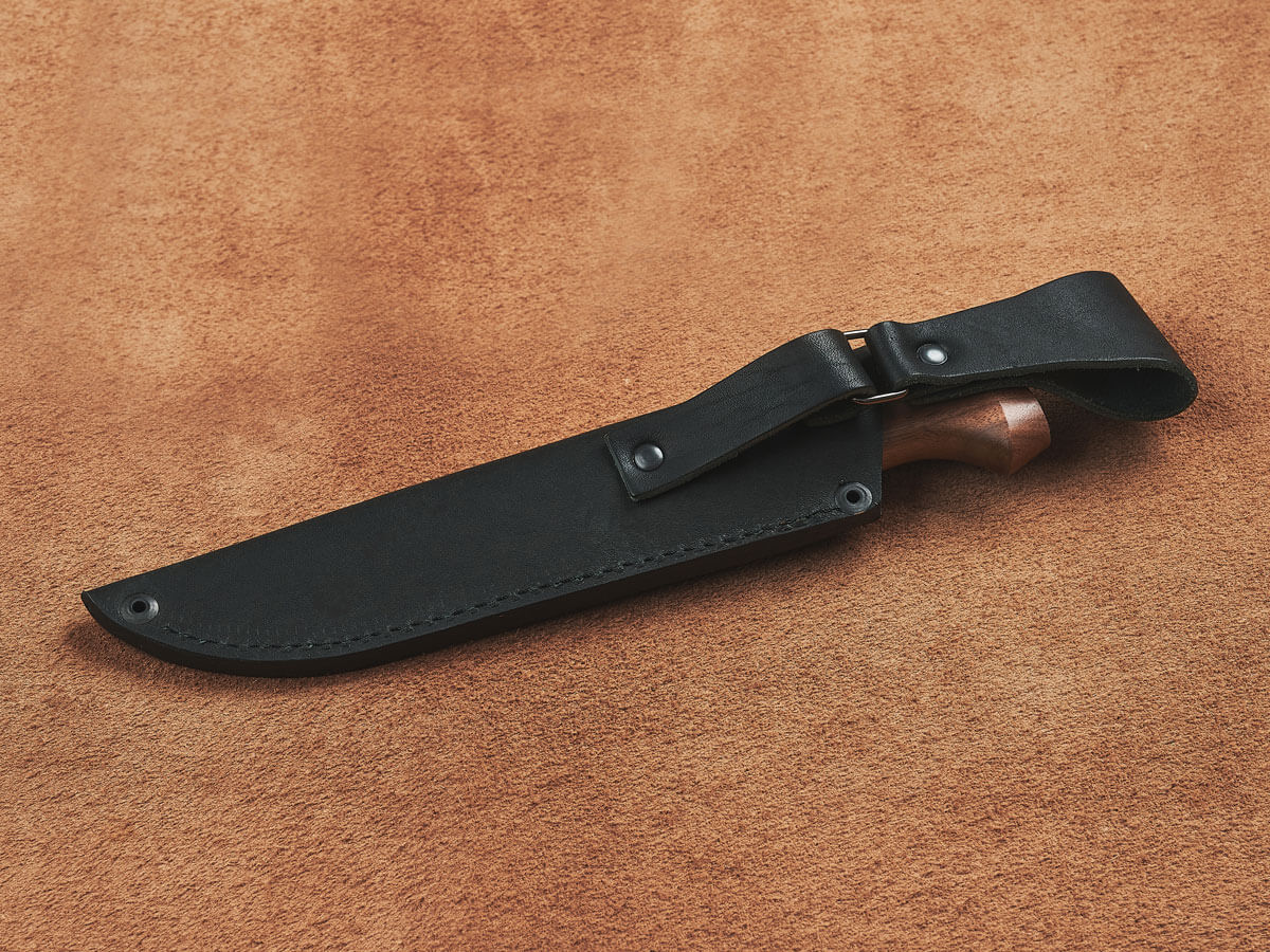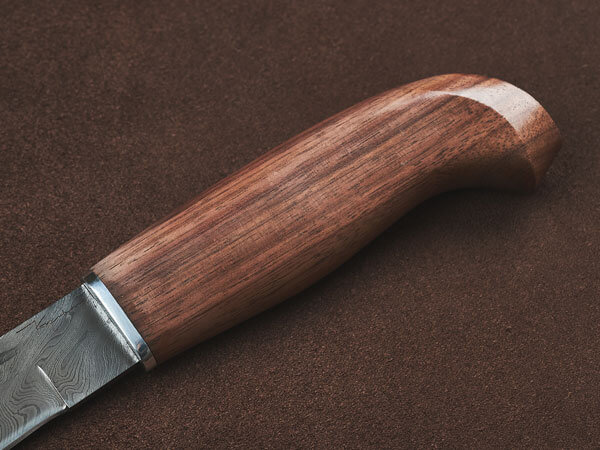При высокой прочности он достаточно легкий, что позволяет облегчить экипировку на охоте или в турпоходе. Дерево приятно наощупь и удобно для руки, не скользит в мокрой ладони, впитывает излишки пота. Древесина ореха привлекательна на вид и имеет разнообразную текстуру, которая придает индивидуальность каждому экземпляру ножа.