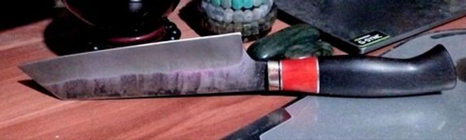 Лезвие из такой стали имеет устойчивую кромку, которую можно заточить до бритвенной остроты. Кроме того, оно очень долго держит заточку, а при необходимости его можно легко править с помощью алмазного бруска. Сталь Х12МФ имеет малую чувствительность к перепадам температуры, что важно для кухонного ножа.