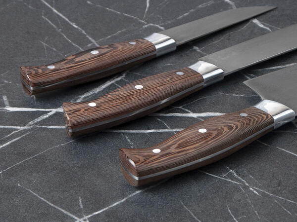 Ножи профессионального уровня позволят вам резать продукты легкими и уверенными движениями, превратив приготовление еды в яркий и увлекательный процесс. С помощью трех премиальных ножей «Profi Wood» вы сможете с блеском проявить свое кулинарное мастерство и порадовать вкусными блюдами близких и друзей.