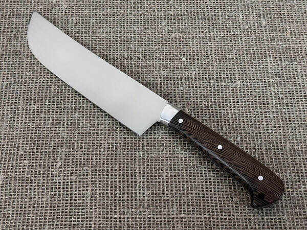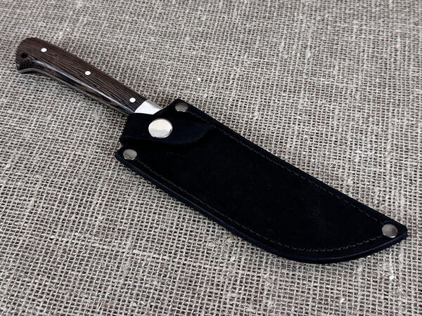 Ручка ножа из массива африканского Венге идеально ложится в руку, снижая усталость даже при длительном использовании. Это редкая и ценная порода тропической древесины, имеет не повторимый природный рисунок. Тяжелая и плотная порода древесины, за счет чего устойчива к нагрузкам. Имеет хорошую природную сопротивляемость к грибкам и насекомым, благодаря этому дерево Венге долго может сохранять природную красоту и текстуру.