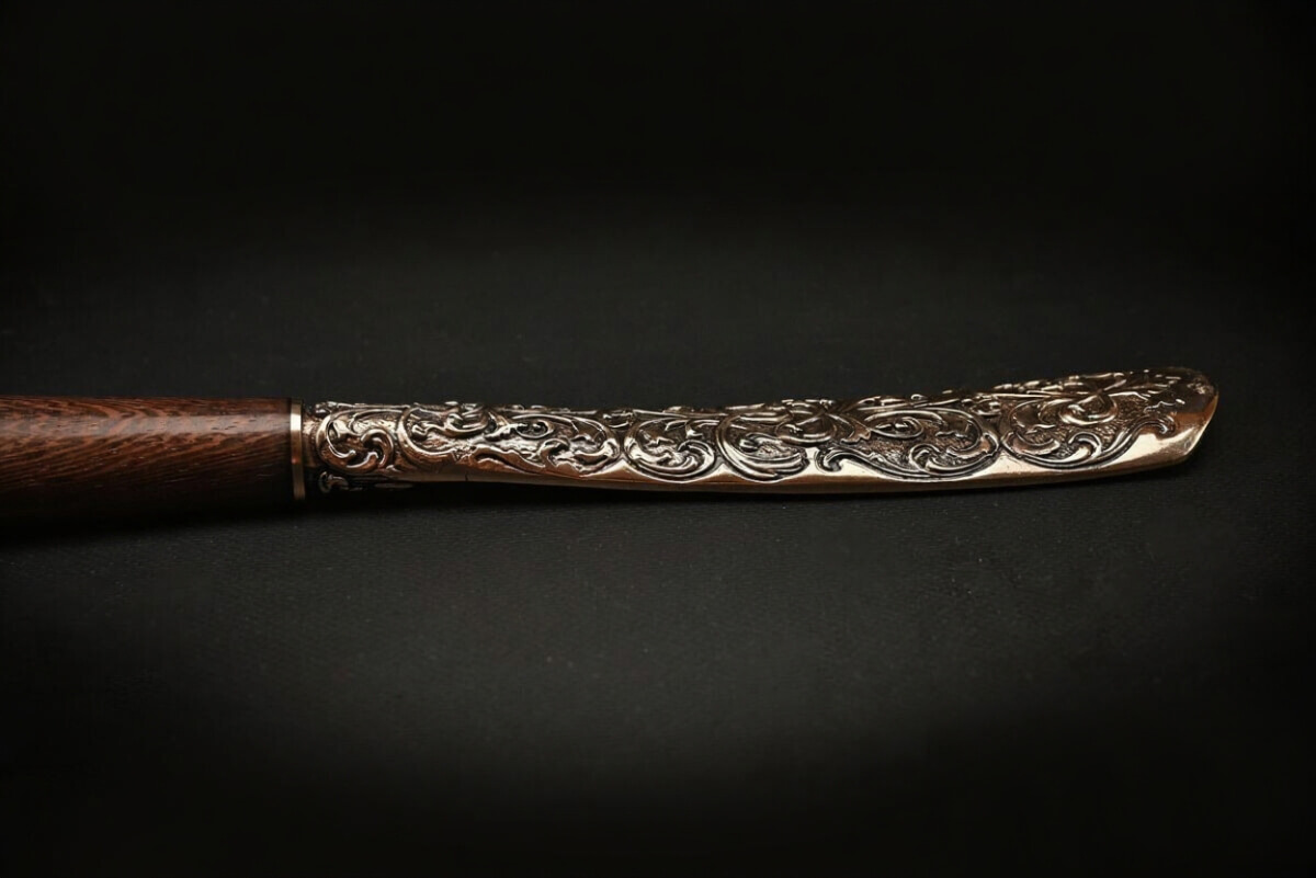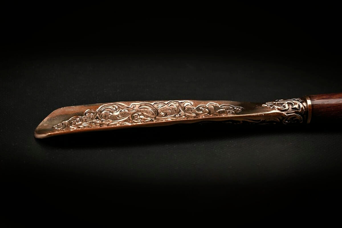 Навершие и рожок изготовлены из латуни методом художественного литья, имеют идеальную детализацию и прорисовку всех элементов.