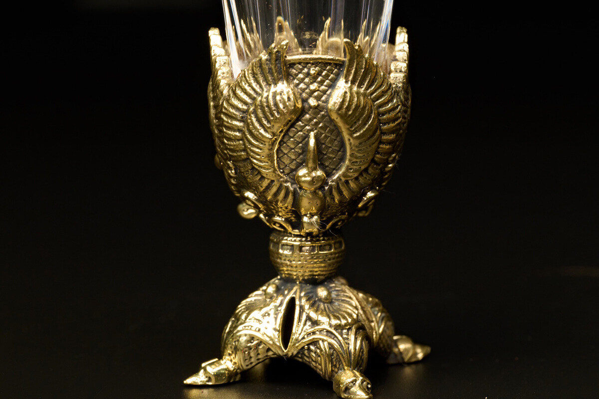 Особую выразительность комплекту придают декоративные латунные элементы, выполненные методом художественного литья.