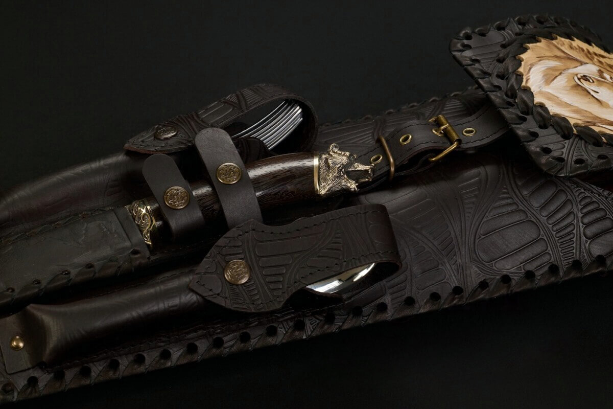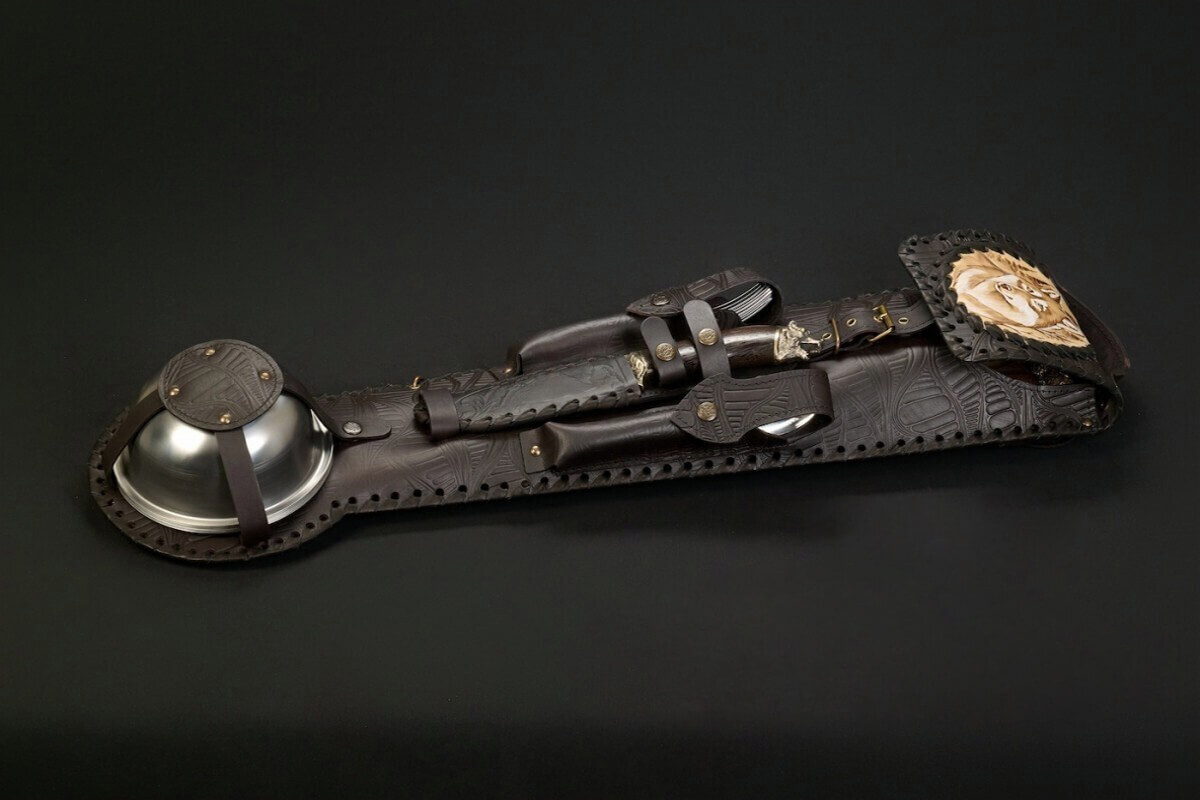 Чехол для шампуров выполнен из натуральной кожи, удобный в использовании, имеет ручку для переноски. На кожу прикреплен эмблема, выполненная вручную. Все материалы качественные и прослужат Вам долгие годы.