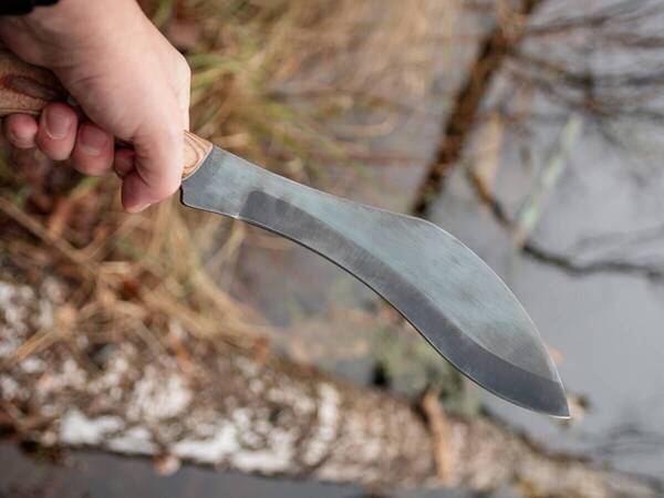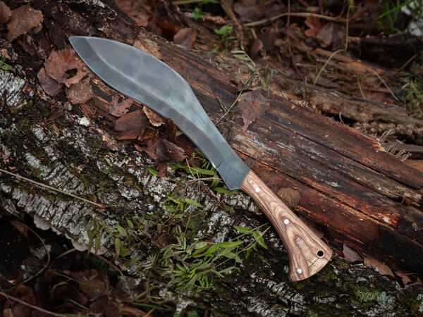 Форма клинка у Кукри уникальная, им удобно и рубить, и резать, и даже немного копать землю. Отличный и интересный инструмент.