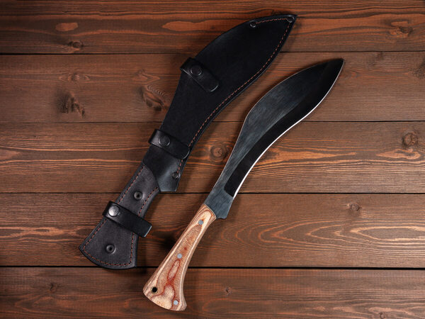 Этнический нож "Кукри" с непальскими корнями и богатой историей. "Кукри" имеет более древнее происхождение, чем "Мачете", но близок ему по характеристикам, а в чем-то его и превосходит. Его ключевой особенностью является крутая кривизна вогнутого лезвия, заточенного с внутренней стороны.