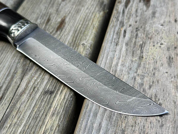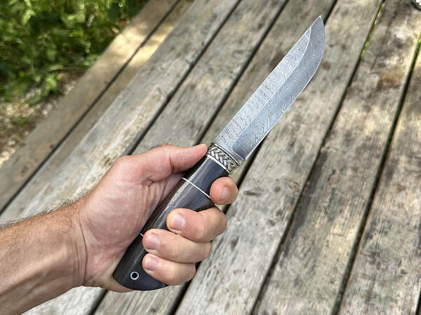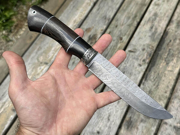 Пополнил свой арсенал таким красавцем. Дамасская сталь сама по себе красивая, но только в умелых руках мастера. Здесь всё выполнено на 5+. Рад покупке и своевременной доставке.
