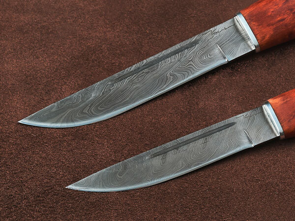 На испытаниях ножи отлично показывают себя на плотной древесине и с легкостью режут бумажный лист. Они дают ту безупречную чистоту среза, которая характерна для дамасской стали.