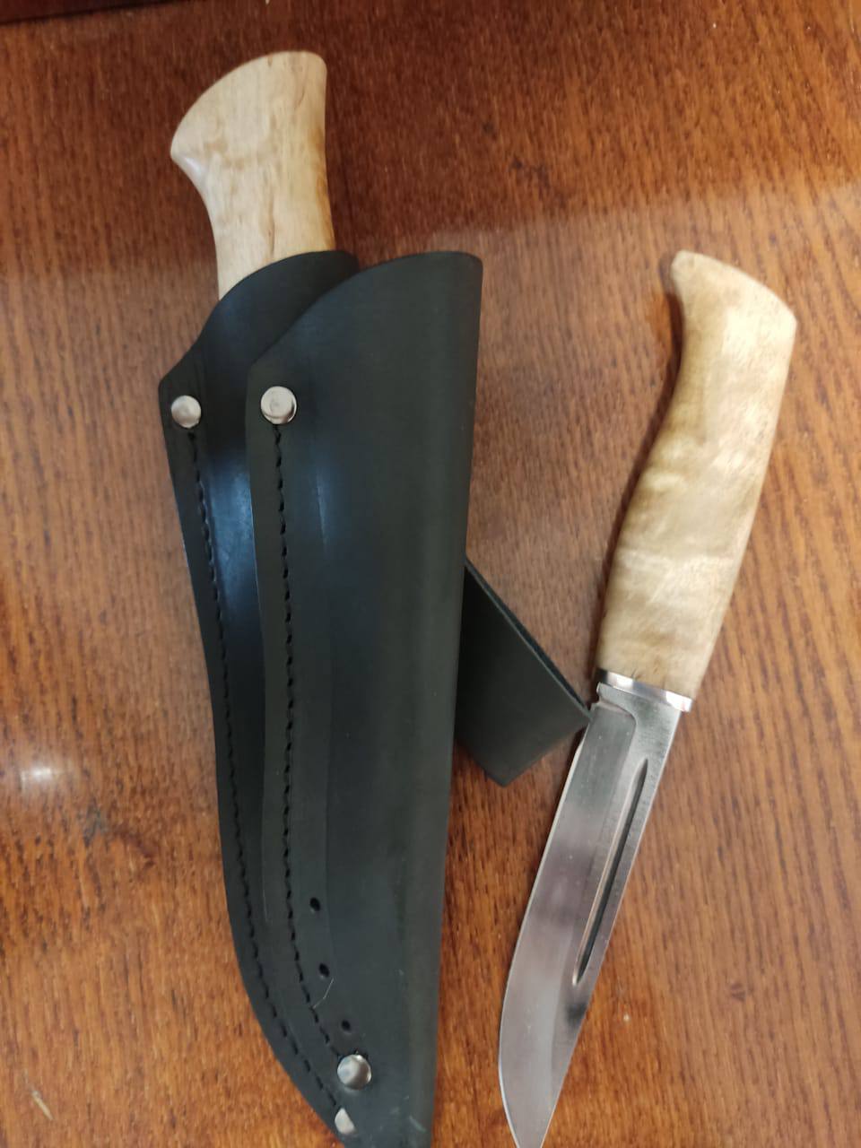 Приобрел эту спарку перед походом в Карелию, и остался очень доволен. Мировые ножи! Сталь Х12 зверь, держит заточку на ура. Карельская береза в руке лежит как влитая. На охоте разделывать дичь было одно удовольствие. Давно хотел что-то подобное.