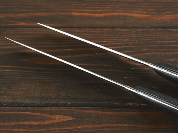 Клинки ножей выполнены из японской стали VG-10. Это высокопрочная сталь с высоким содержанием углерода. Она устойчива к ударам и подходит для интенсивного использования.