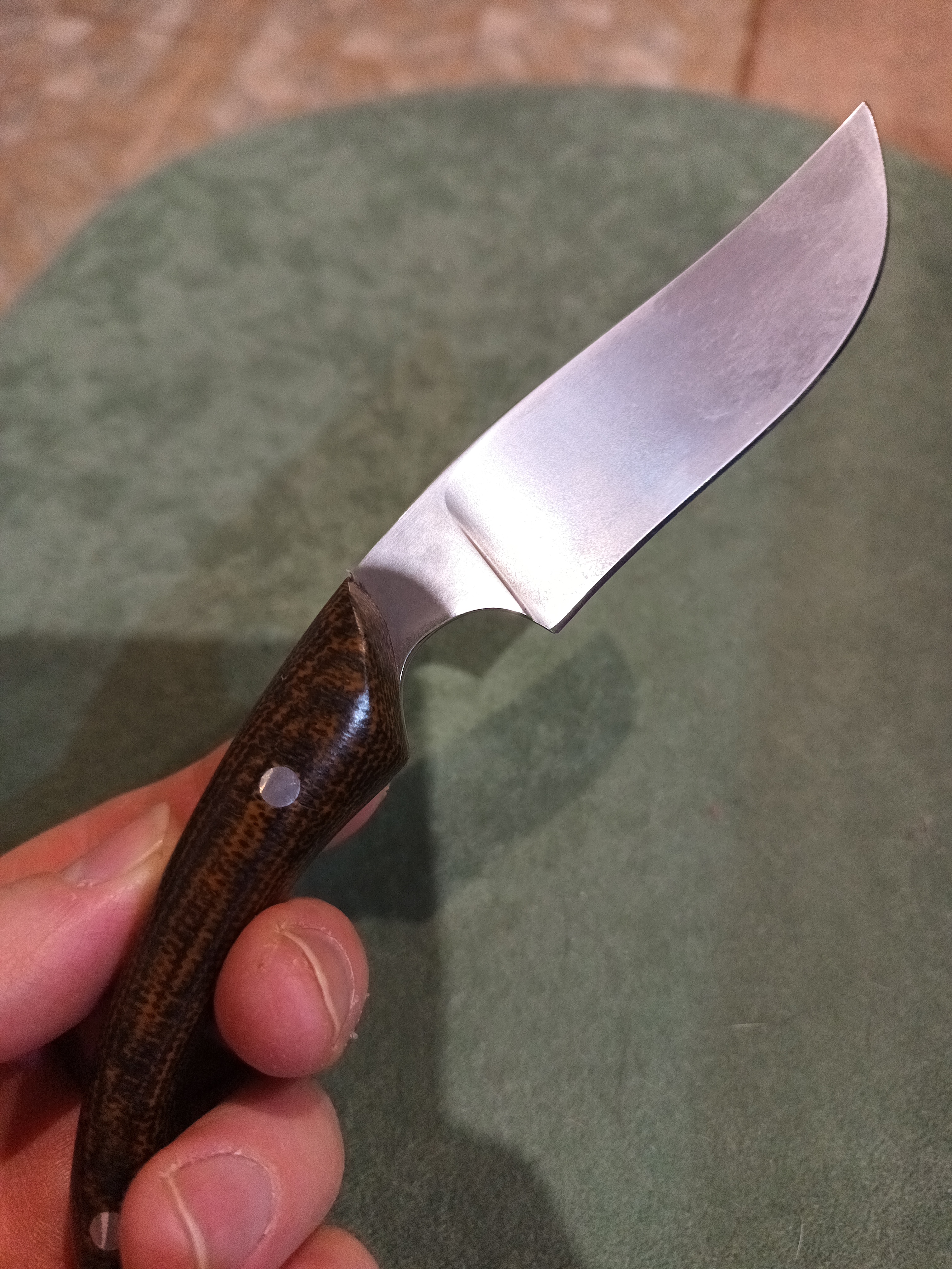 В целом нож неплохой. Но есть нюансы: режущая длина клинка всего 85 мм.; рукоятка немного несимметрична ( но это лишь подтверждает ручное изготовление.) Так что 4 звезды из 5.