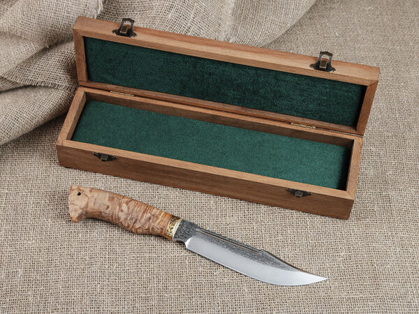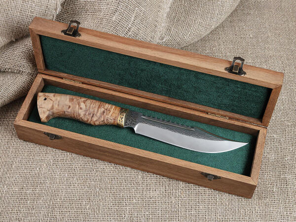 Большой стальной нож в такой шкатулке смотрится очень эффектно и выглядит еще более солидным и внушительным.