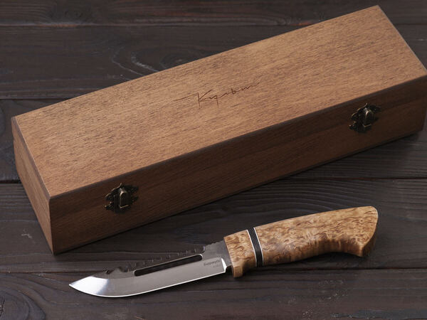 Большой стальной нож в такой шкатулке смотрится очень эффектно и выглядит еще более солидным и внушительным.
