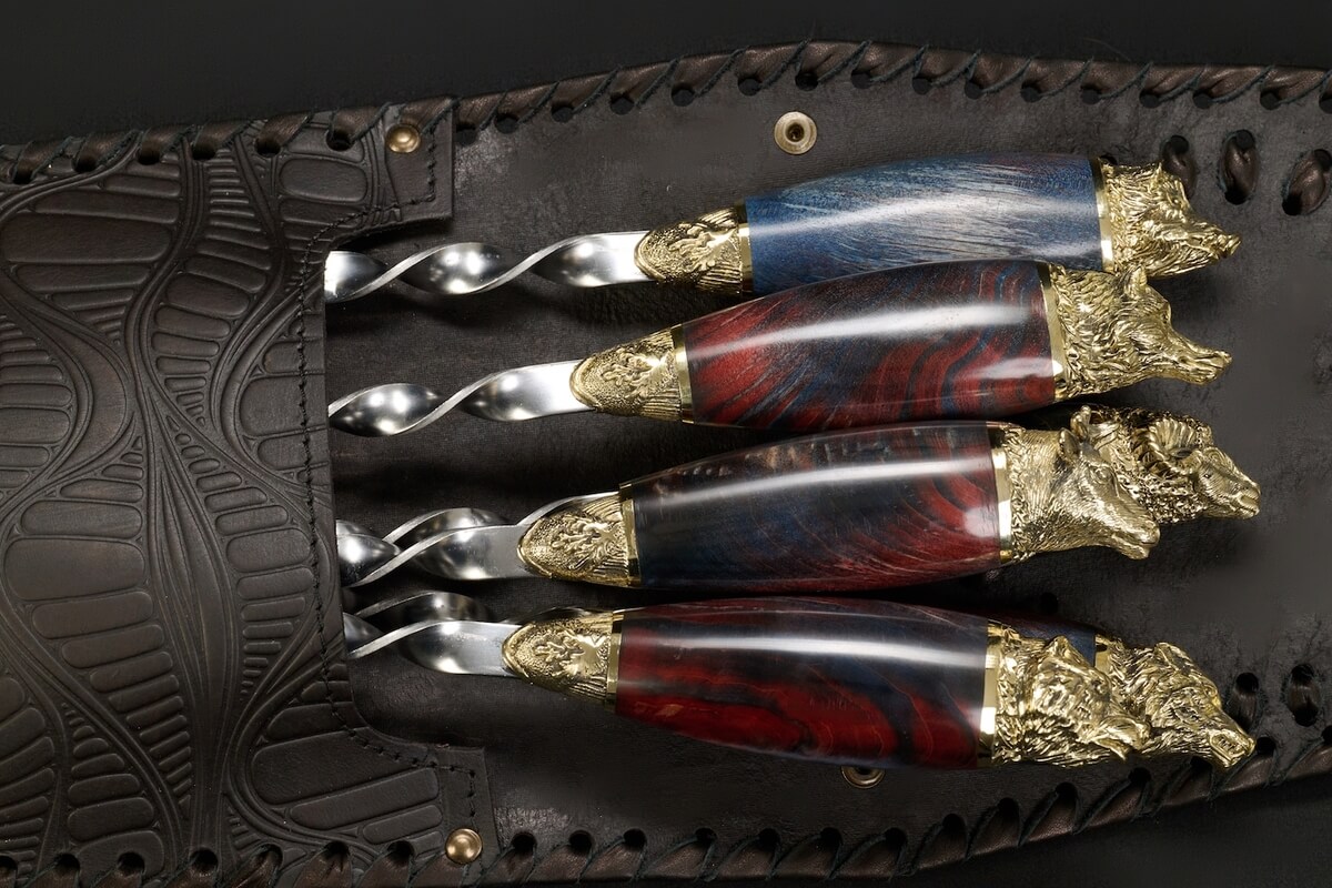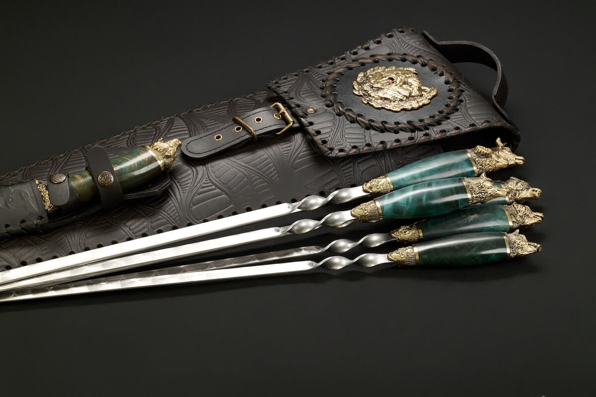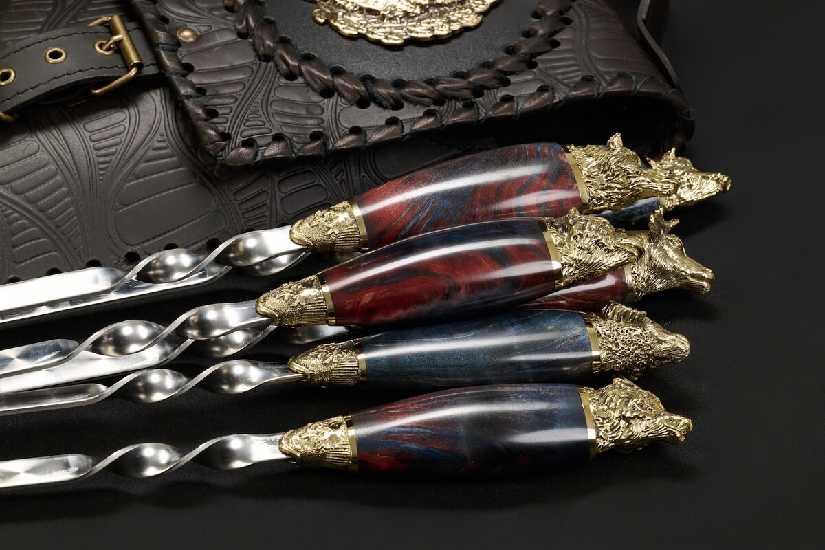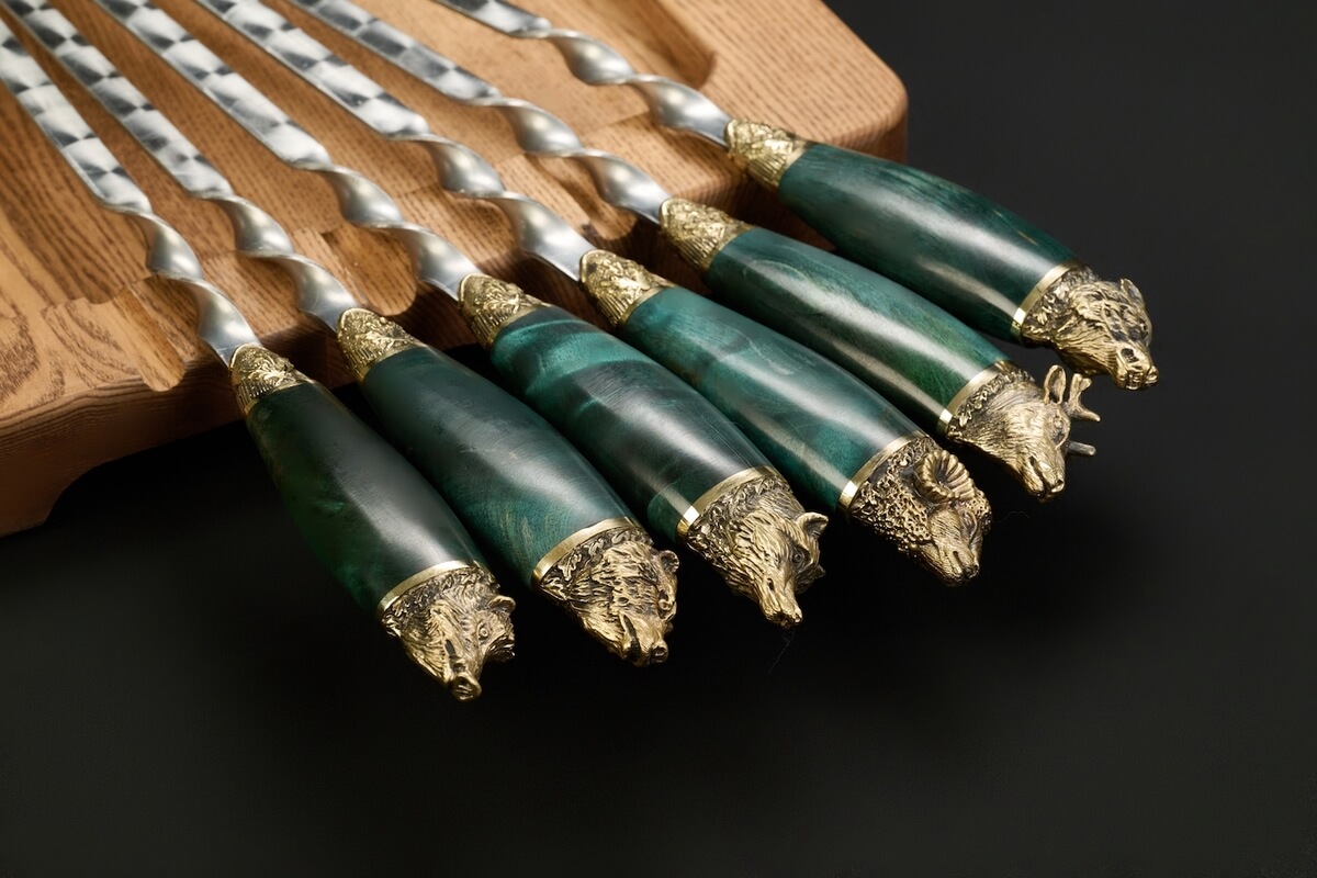 Рабочая часть шампуров изготовлена из высококачественной нержавеющей стали. Каждый экземпляр изготавливается вручную российскими мастерами, что гарантирует уникальность и высочайшее качество.