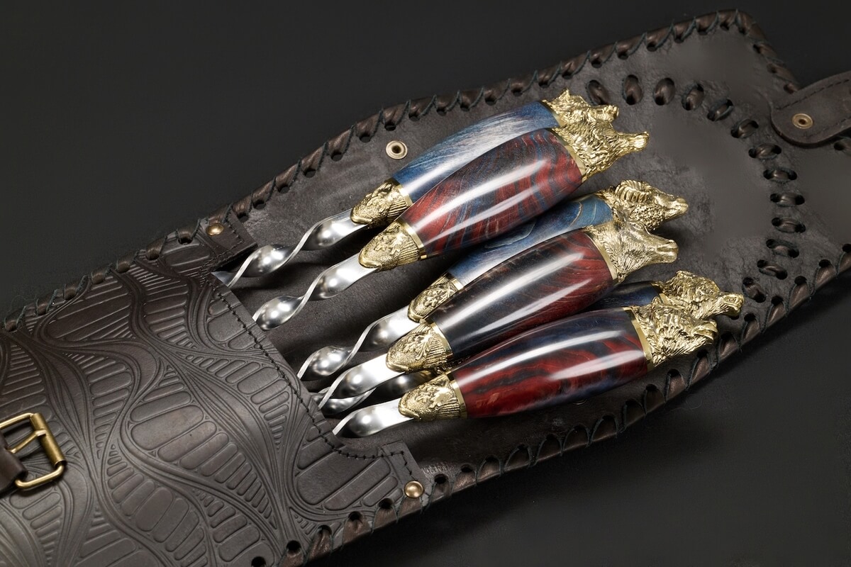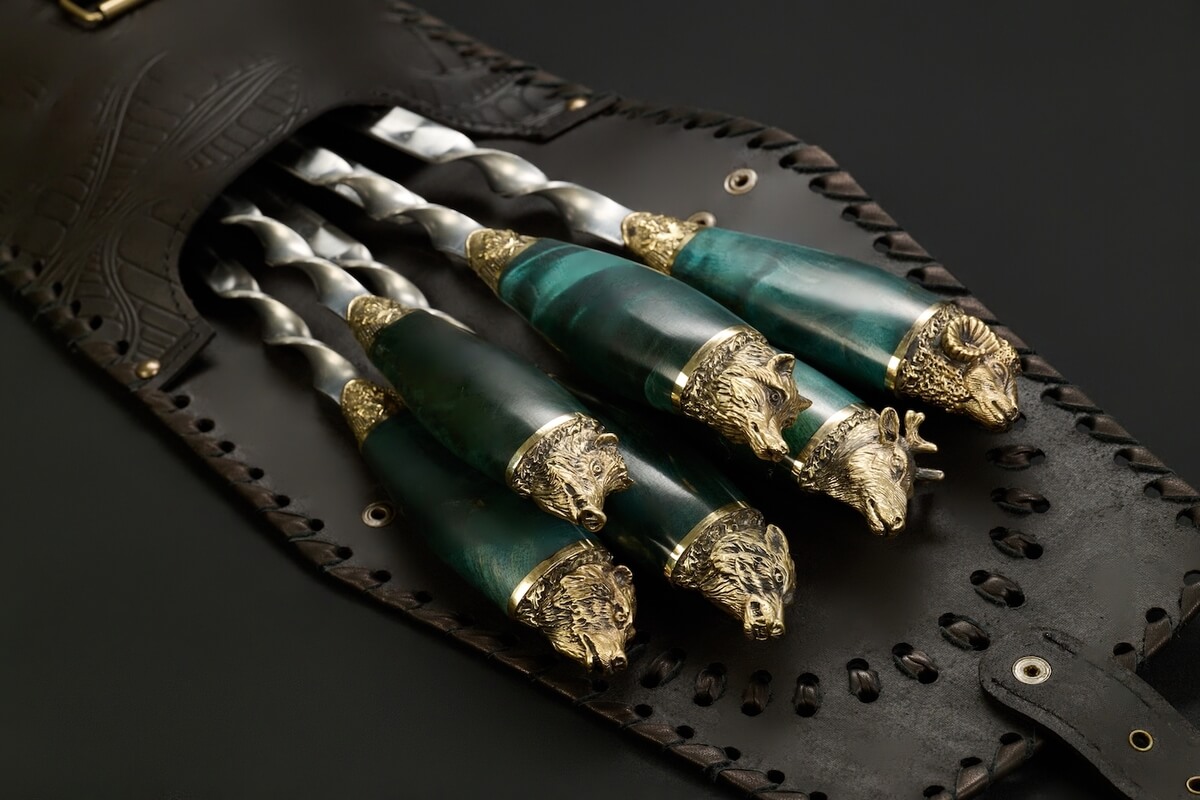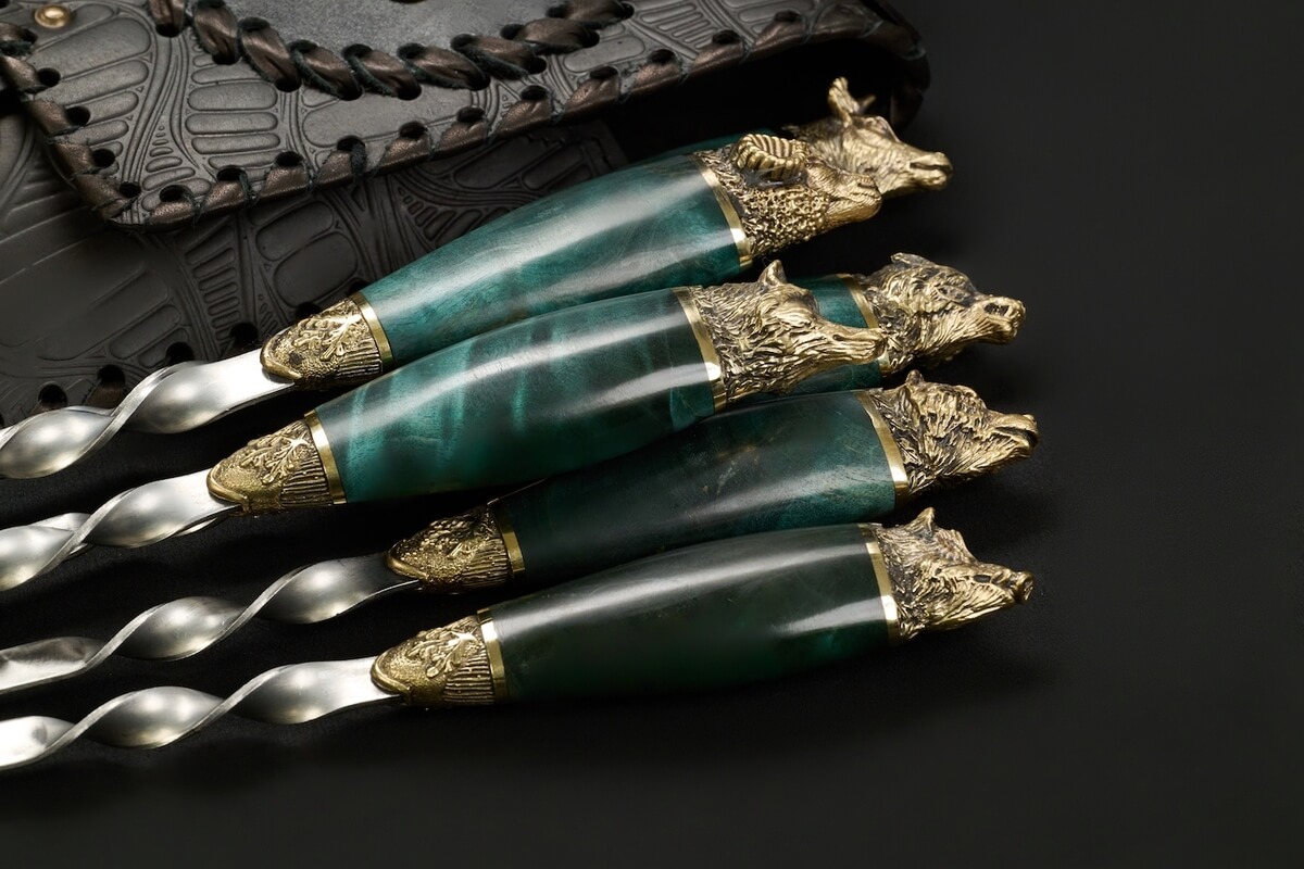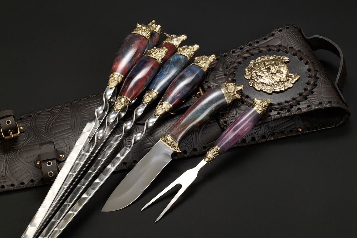 Рабочая часть шампуров изготовлена из высококачественной нержавеющей стали. Каждый экземпляр изготавливается вручную российскими мастерами, что гарантирует уникальность и высочайшее качество.