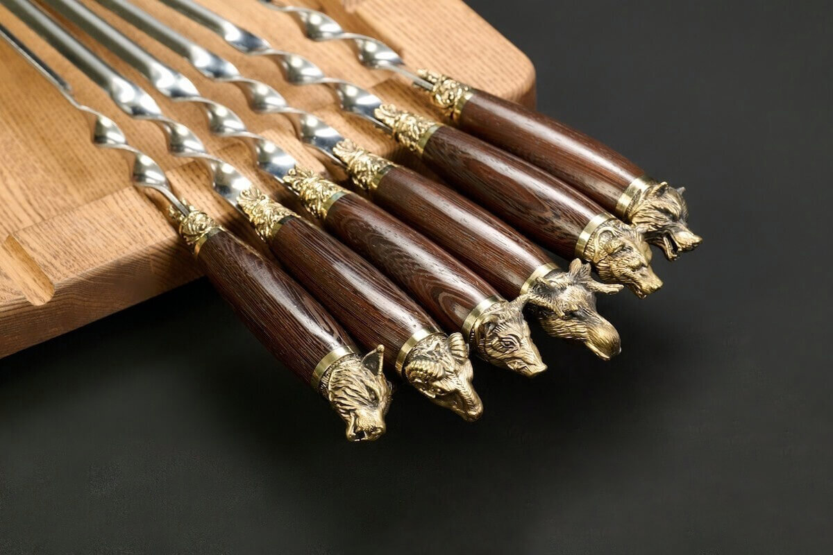 • Шампуры «Звери Лесные» угловые 2 мм, рукоять венге — 6 шт.