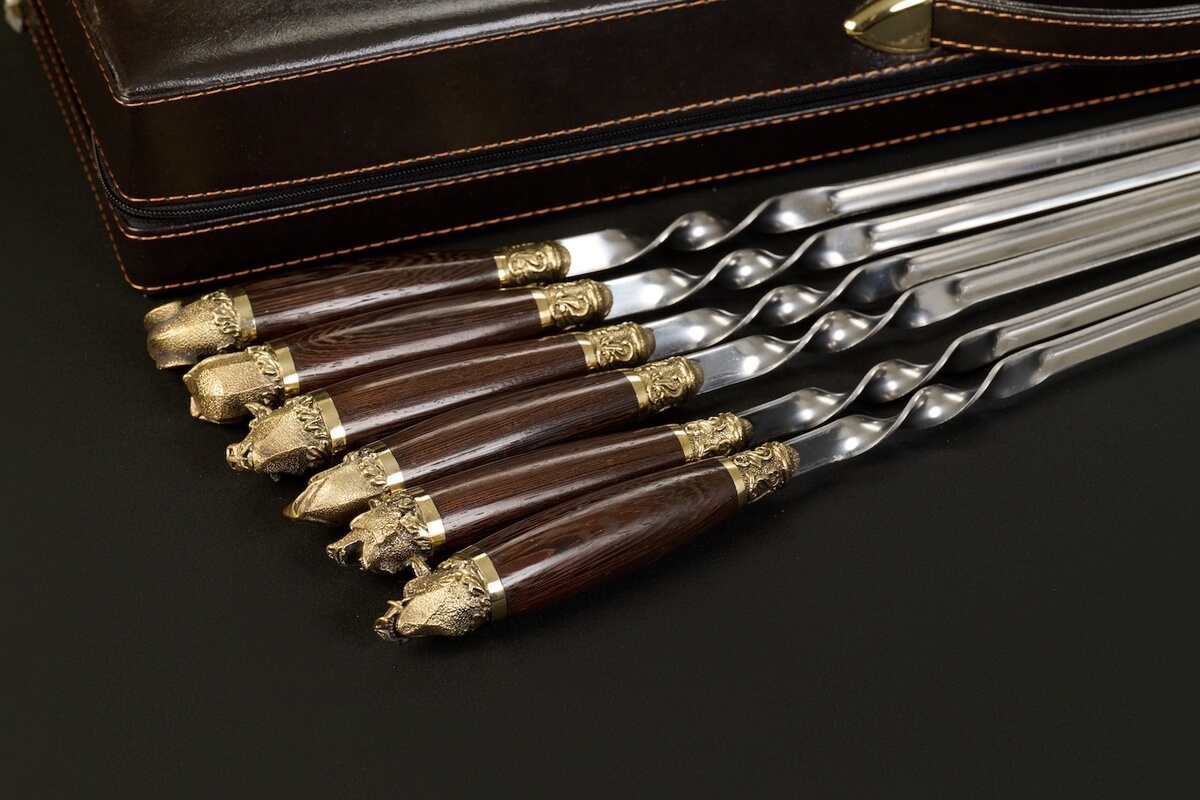 • Шампуры «Звери Каменные» угловые 2 мм, рукоять венге — 6 шт.